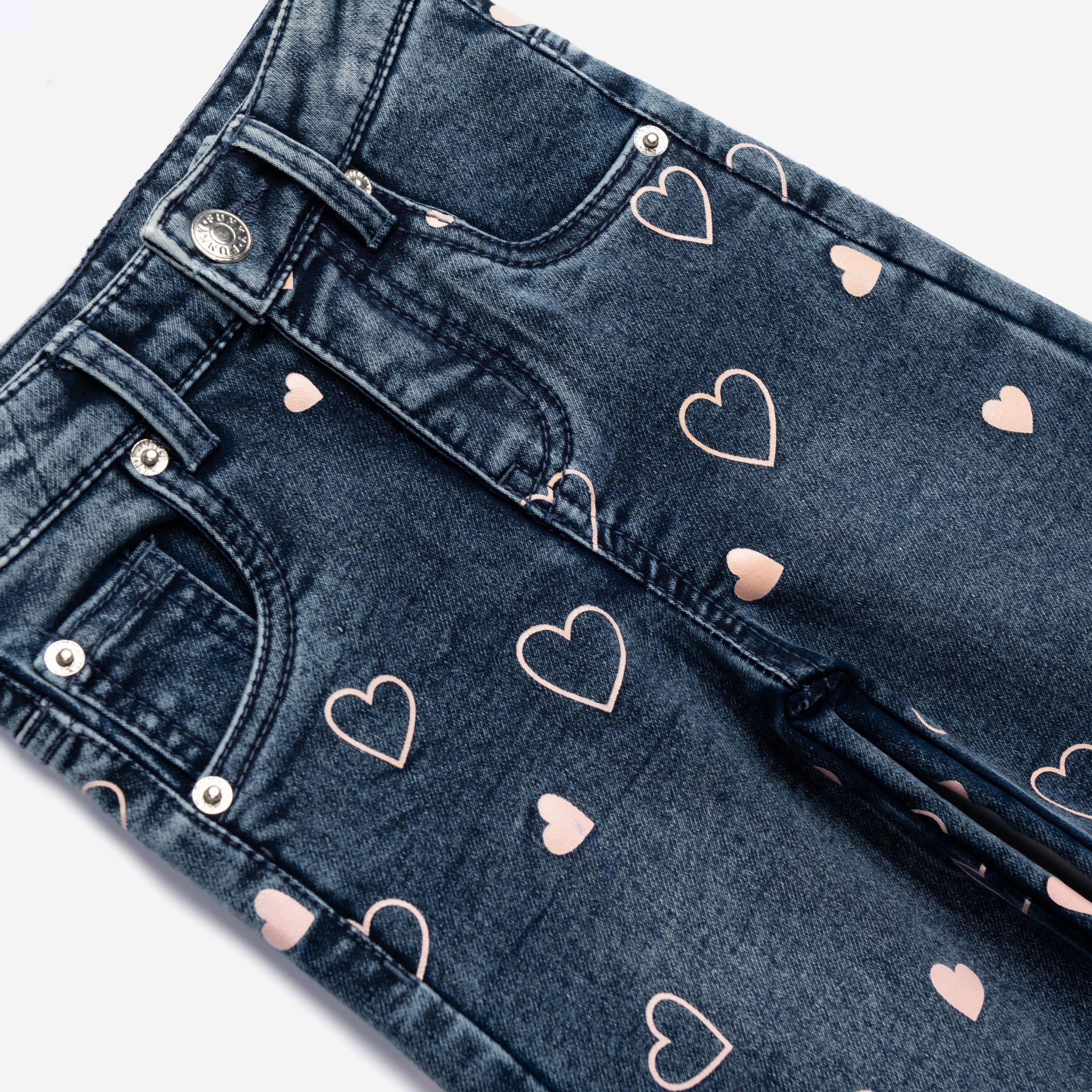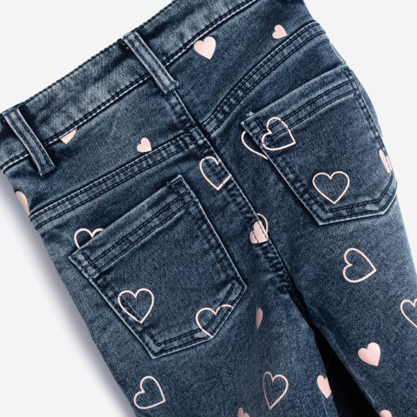 Παντελόνι τζιν λύκρα μαλακό για κορίτσι 2-6 ετών σε χρώμα μπλε allover με ροζ καρδιές