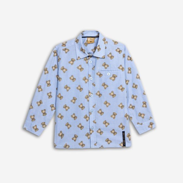 Πουκάμισο ποπλίνα για αγόρι 2-6 ετών σε χρώμα σιελ allover