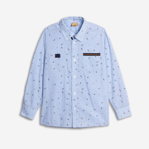 Πουκάμισο ποπλίνα σε χρώμα σιελ alloverγια 6-16 χρονών αγόρι