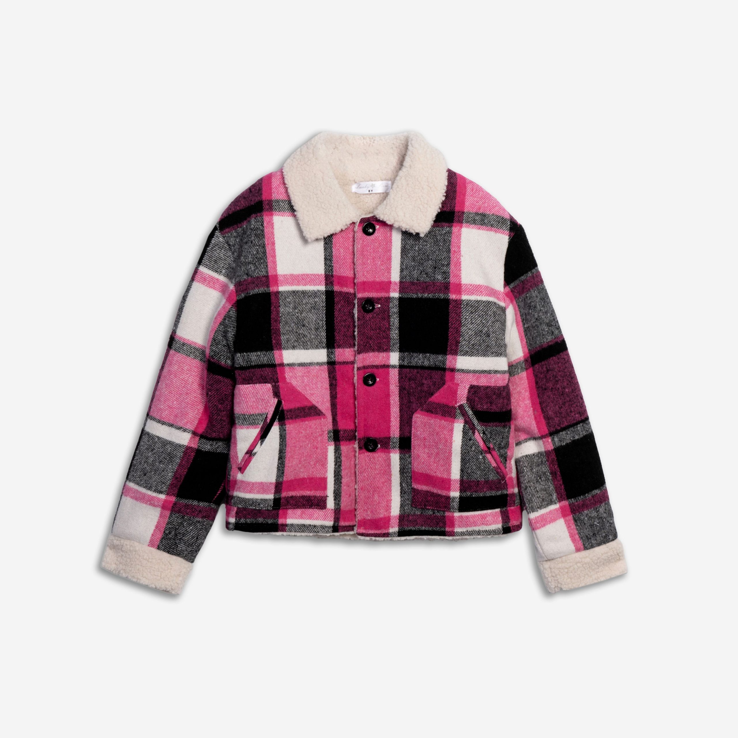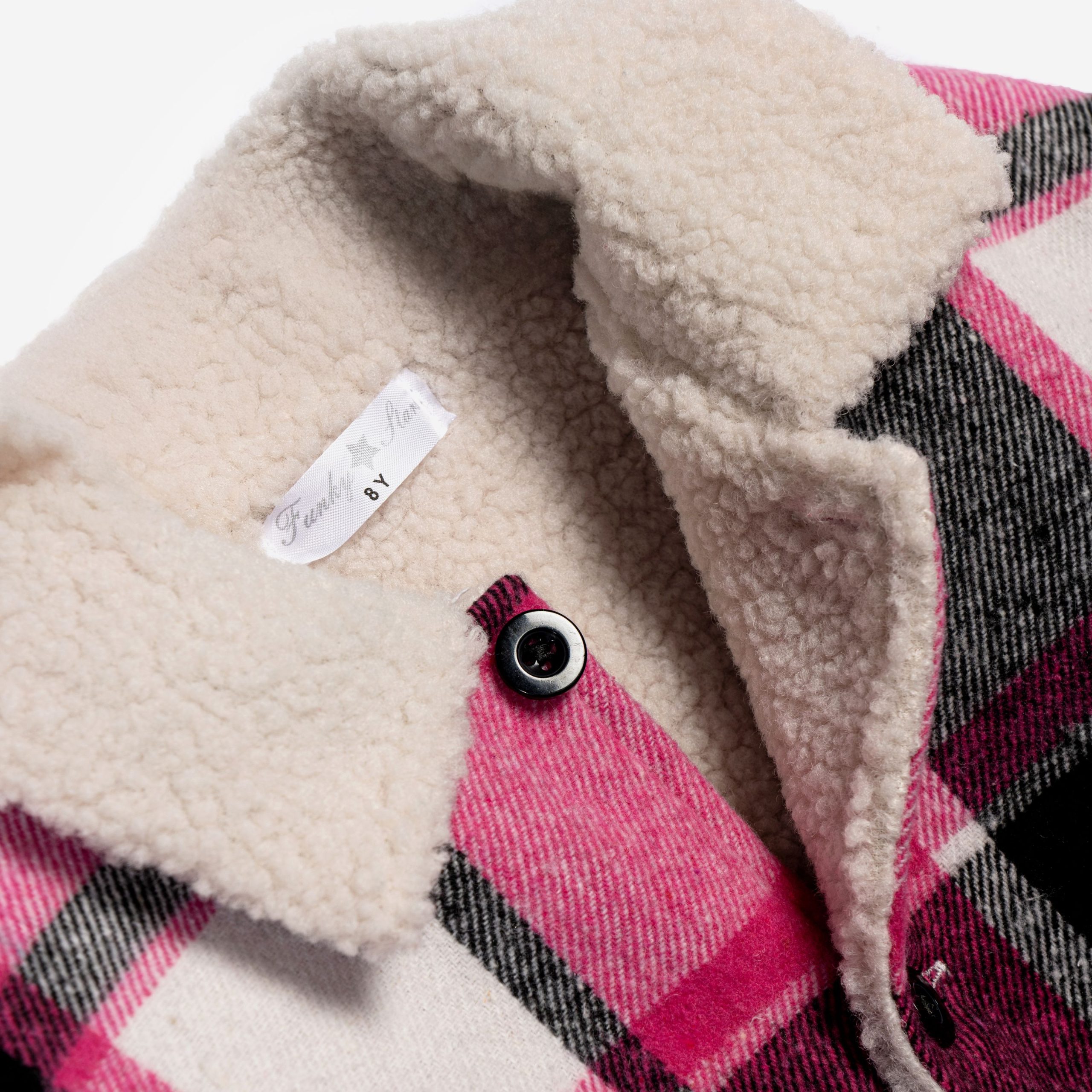 Πουκάμισο καρώ με προβατάκι για κορίτσι 6-16 χρονών σε χρώμα εκρού-μαύρο-φουξ