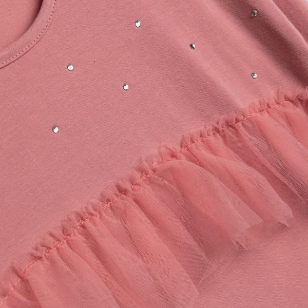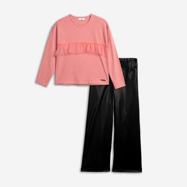 Σετ μπλούζα με στρας και βολάν λύκρα και παντελόνα δερματίνη για κορίτσι 6-16 χρονών σε χρώμα κονφετί/μαύρο