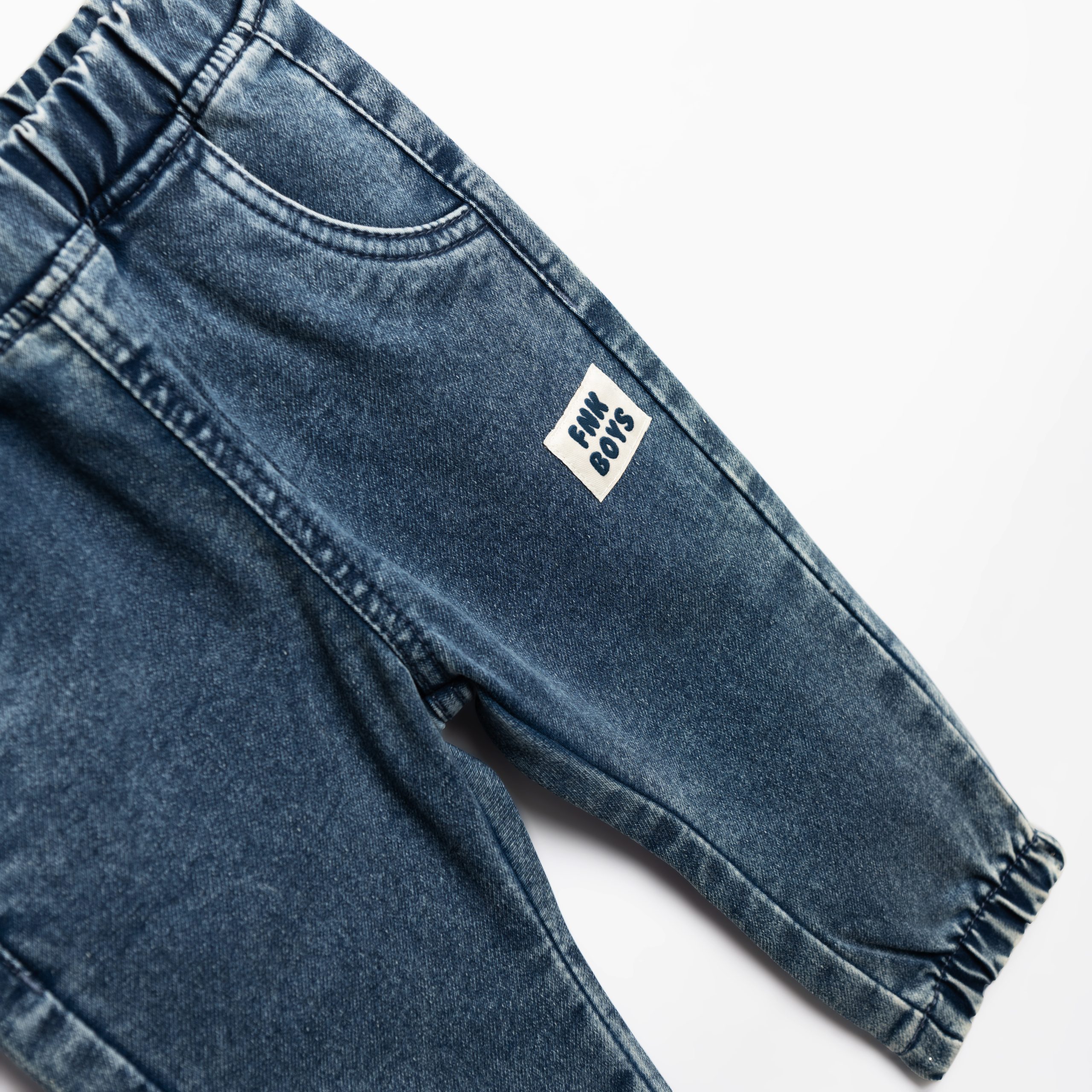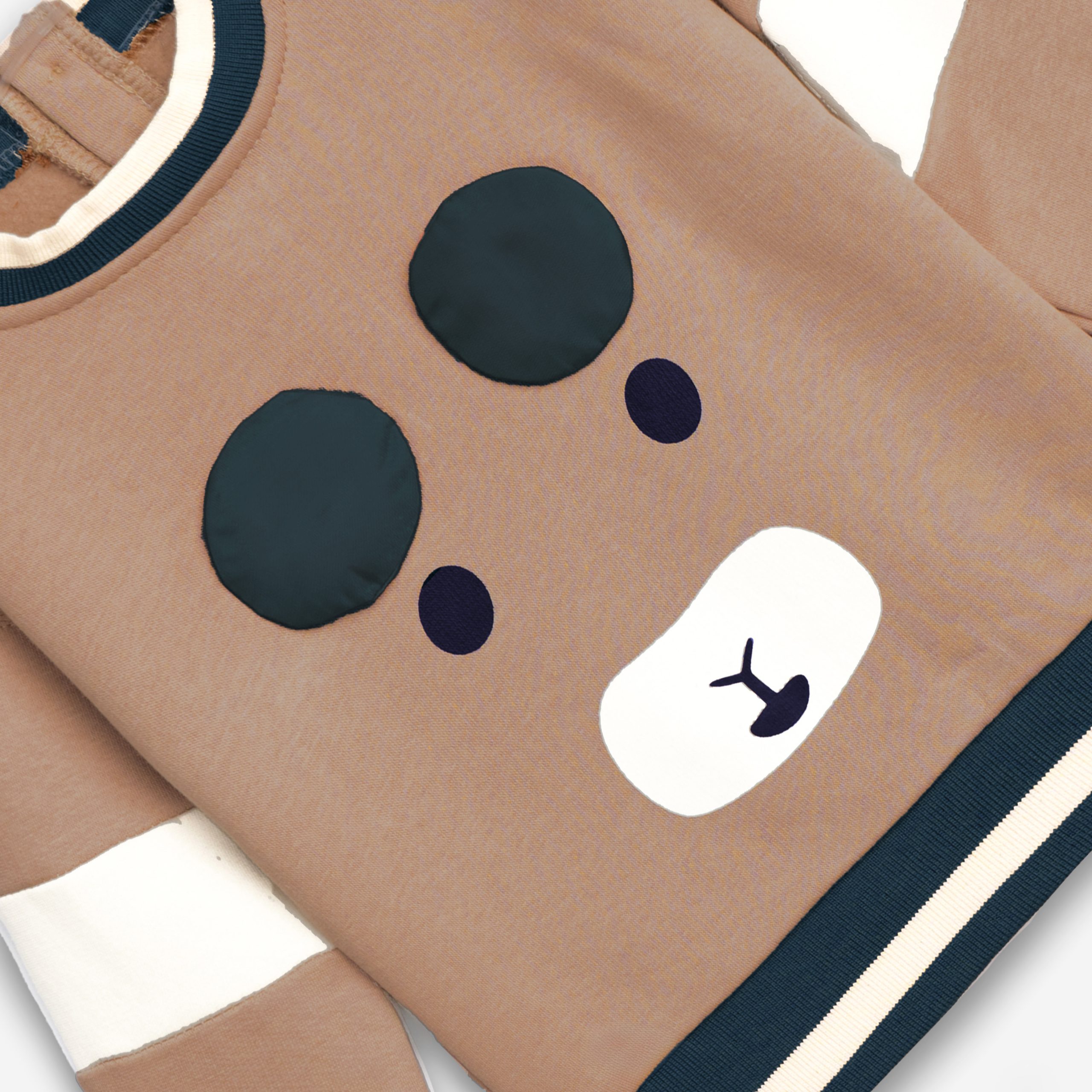 Σετ 2τεμαχίων μπλούζα φούτερ με τύπωμα και παντελόνι τζην λύκρα για αγόρι 6-24 μηνών σε χρώμα towny brown/τζην