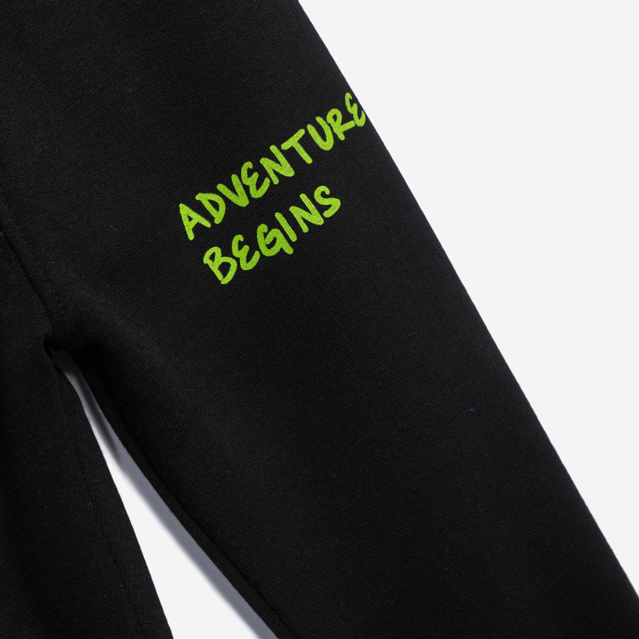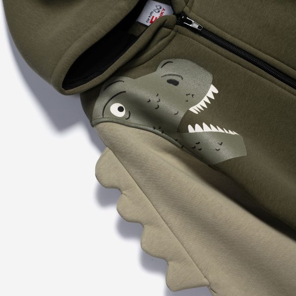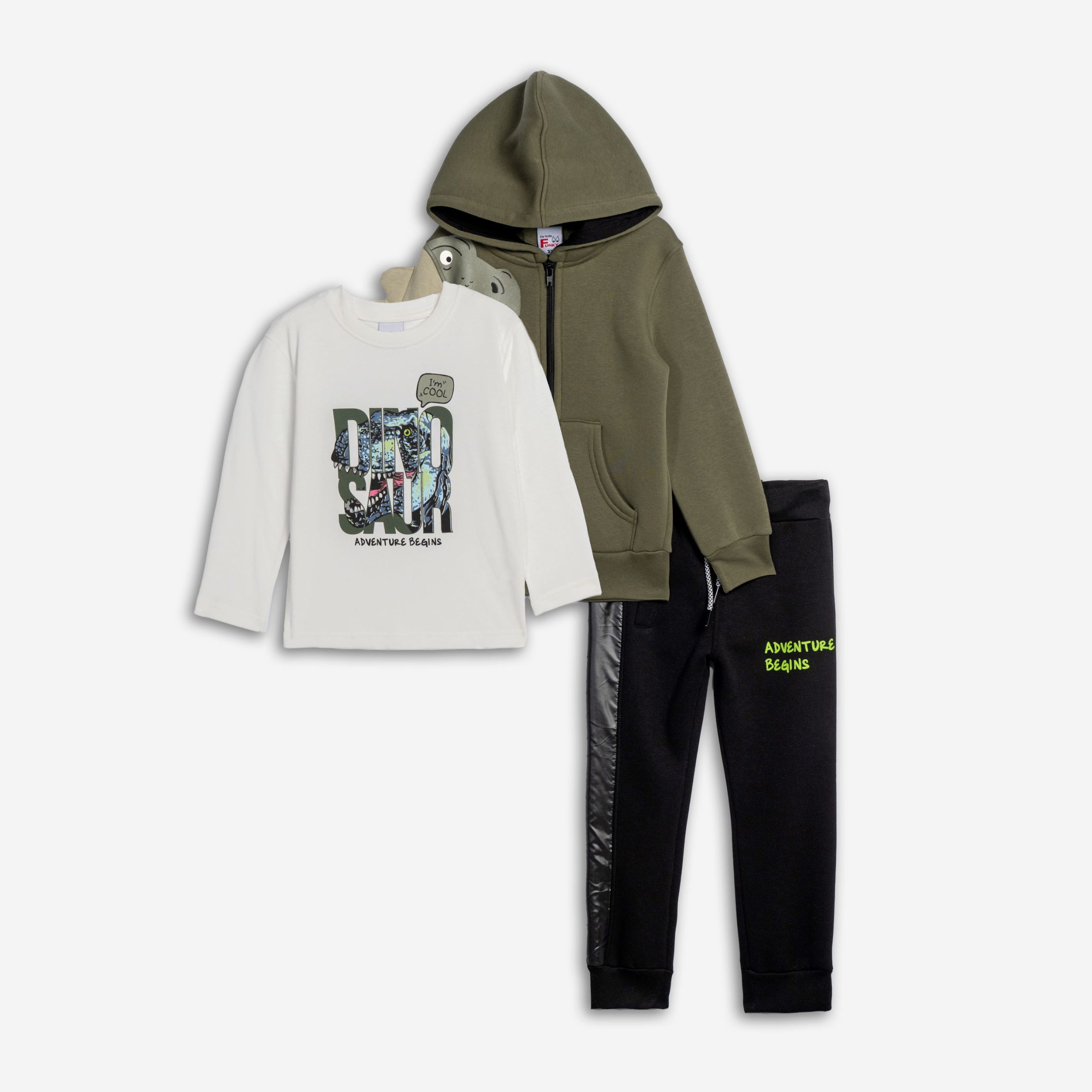 Σετ 3 τεμάχια ζακέτα φούτερ με χνούδι από μέσα για αγόρι 2-6 ετών σε χρώμα χακι-ευκάλυπτος, μπλούζα κάλτσα εκρού και παντελόνι φούτερ σε χρώμα μαύρο