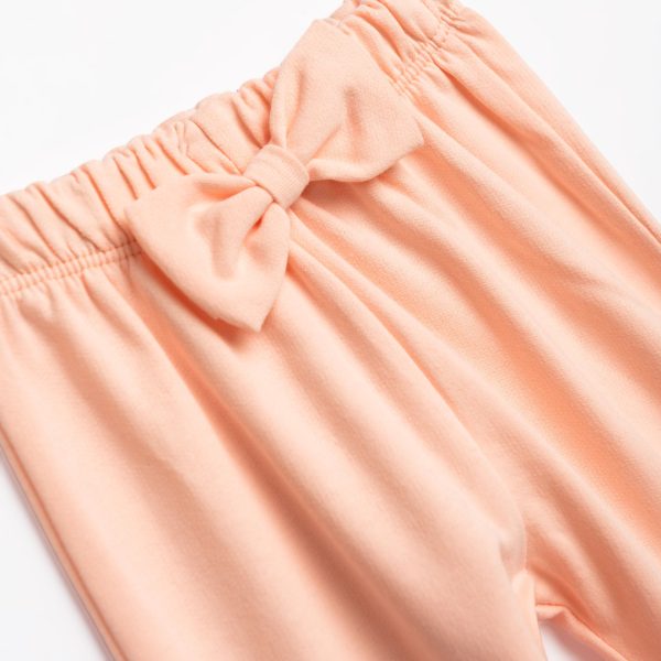 Σετ 3τεμαχίων κορμάκι ιντερλόκ,παντελόνι φούτερ και κορδέλα σε χρώμα μπεζ/ροζ σομόν βρεφανάπτυξη για 0-24 μηνών κορίτσι