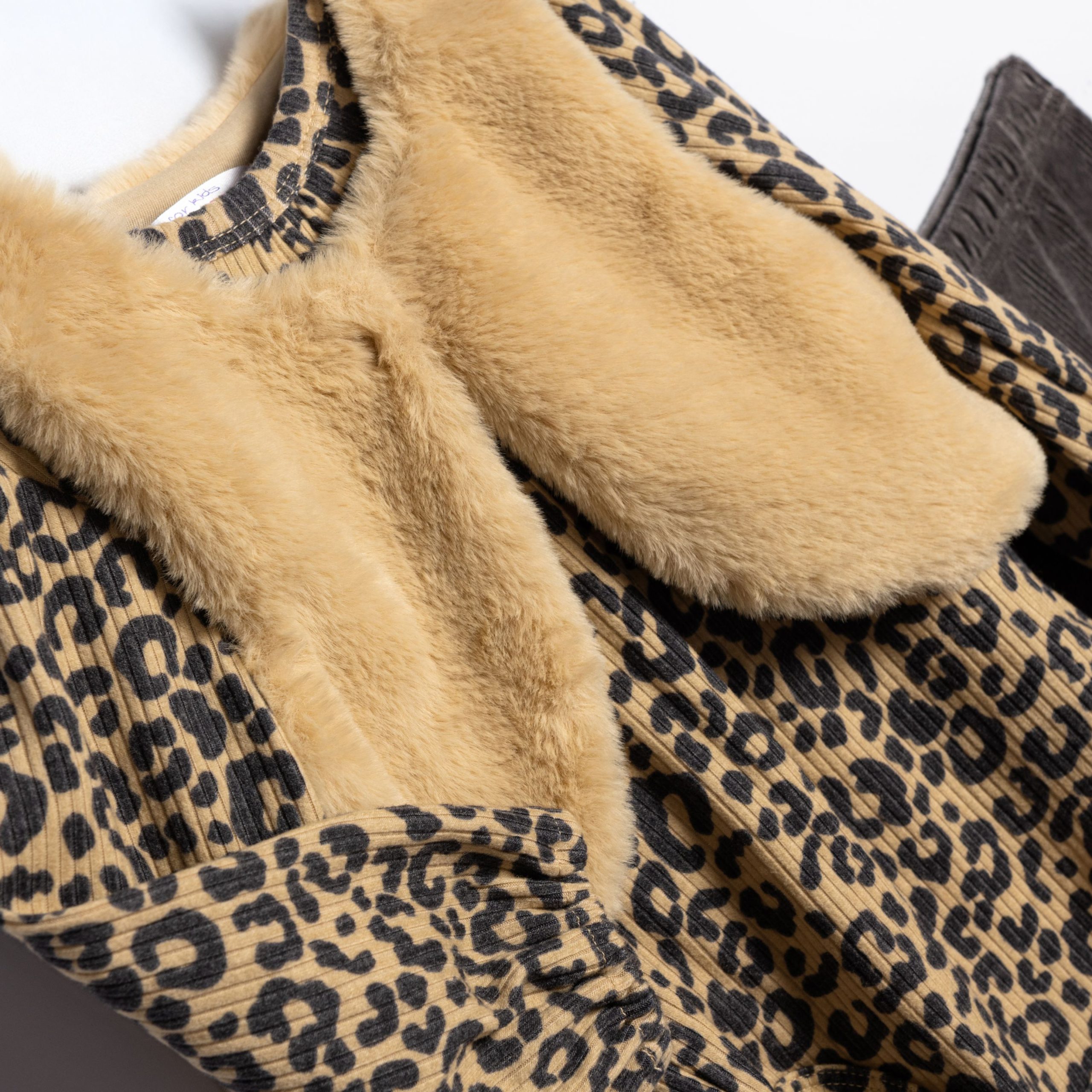 Σετ 3τεμαχίων γουνάκι αμάνικο,μπλούζα λεοπάρ και παντελόνι για κορίτσι 6-24 μηνών σε χρώμα τύπος