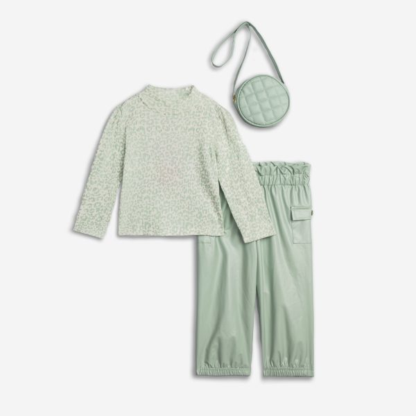 Σετ 3 τεμάχια μπλούζα με παντελόνι και τσαντάκι για κορίτσι 2-6 ετών σε χρώμα φυστικί allover/ φυστικί