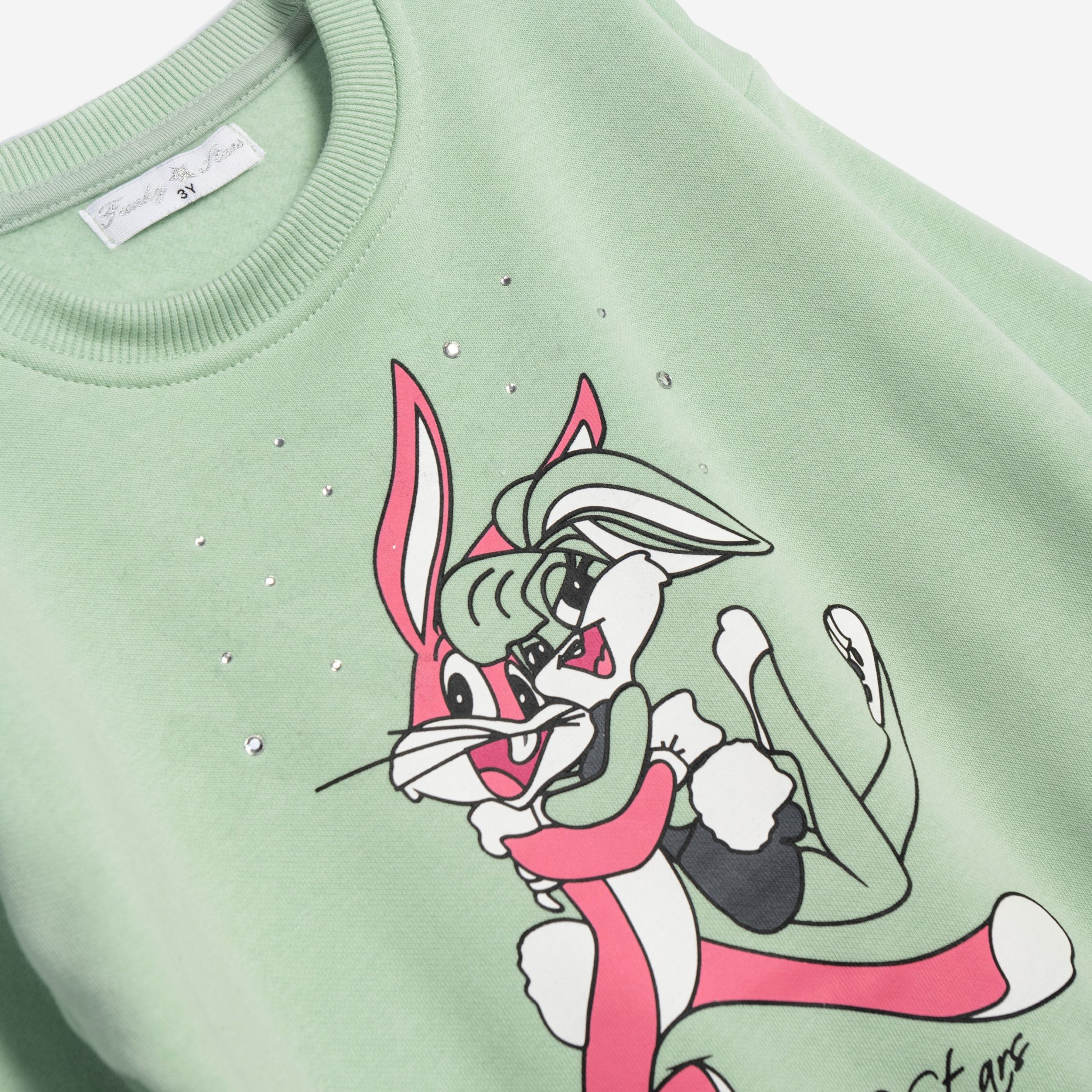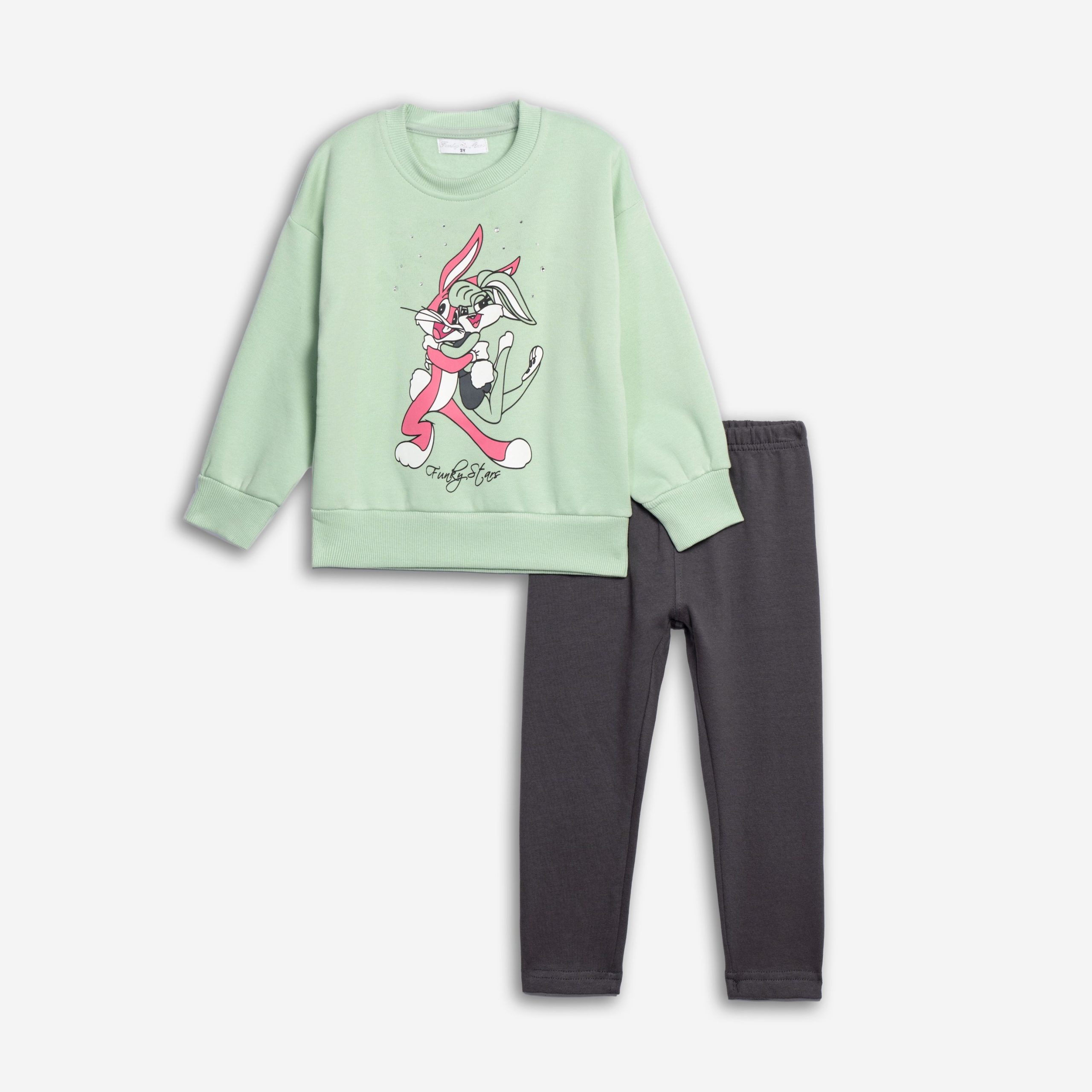 Σετ μπλούζα με κολάν φούτερ για κορίτσι 2-6 ετών σε χρώμα φυστικί/ ανθρακί με τύπωμα στην μπλούζα ( λαγουδάκι)