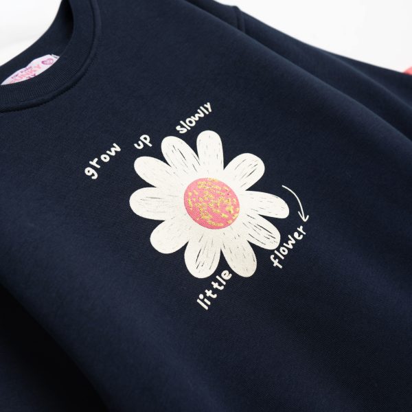 Σετ μπλούζα με κολάν φούτερ για κορίτσι 2-6 ετών σε χρώμα μπλε/ κονφετί allover με τύπωμα στην μπλούζα (μαργαρίτα)