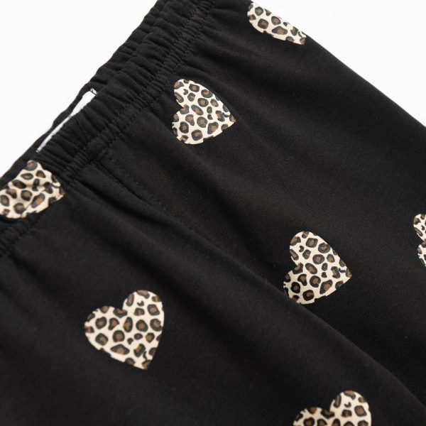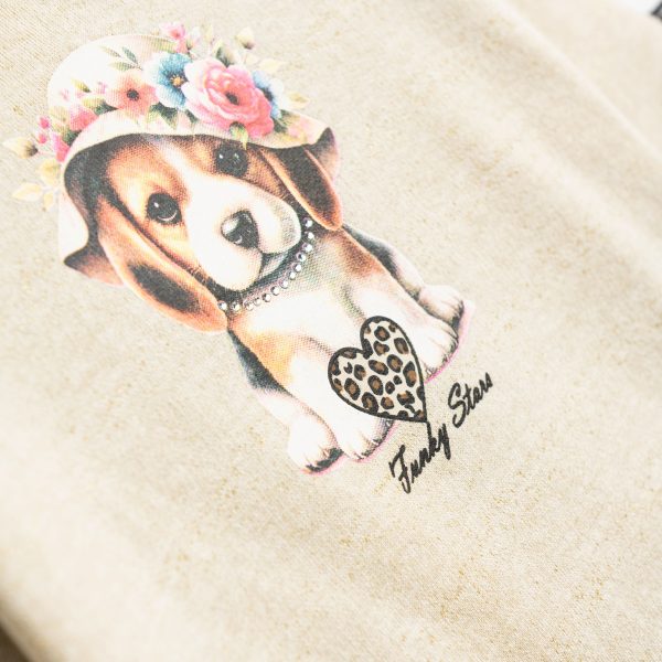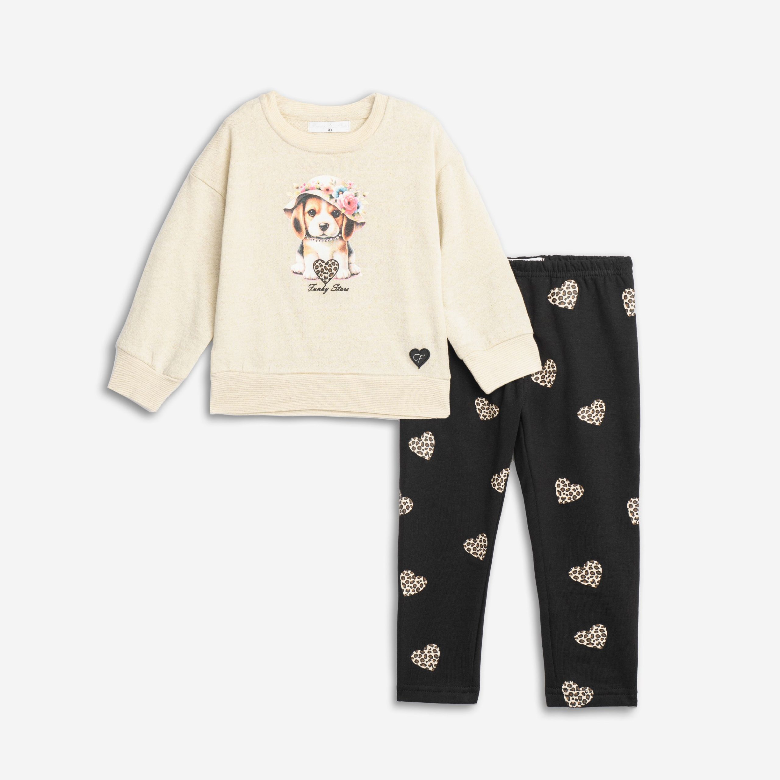 Σετ μπλούζα με κολάν φούτερ για κορίτσι 2-6 ετών σε χρώμα χρυσό λούρεξ/ μαύρο allover με τύπωμα στην μπλούζα (σκυλάκι) και καρδιές στο κάτω μέρος