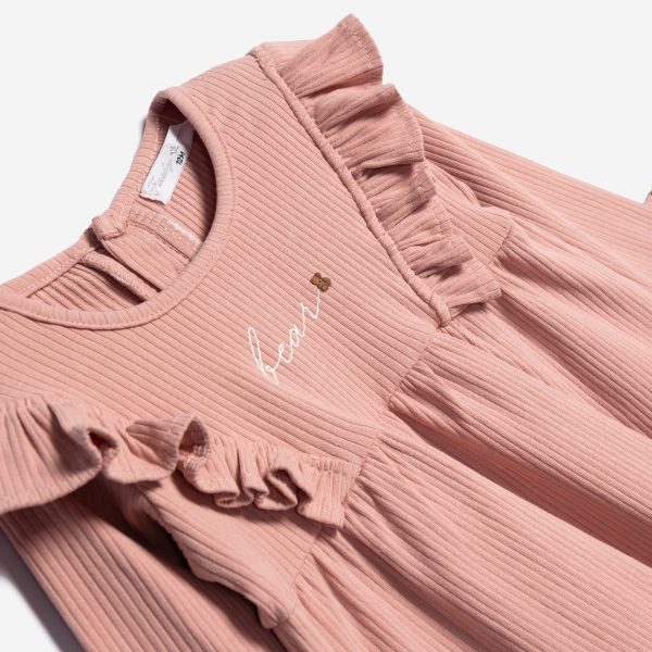 Σετ μπλούζα ριπ με βολάν και κολάν ριπ για κορίτσι 6-24 μηνών σε χρώμα pink/powder pink allover