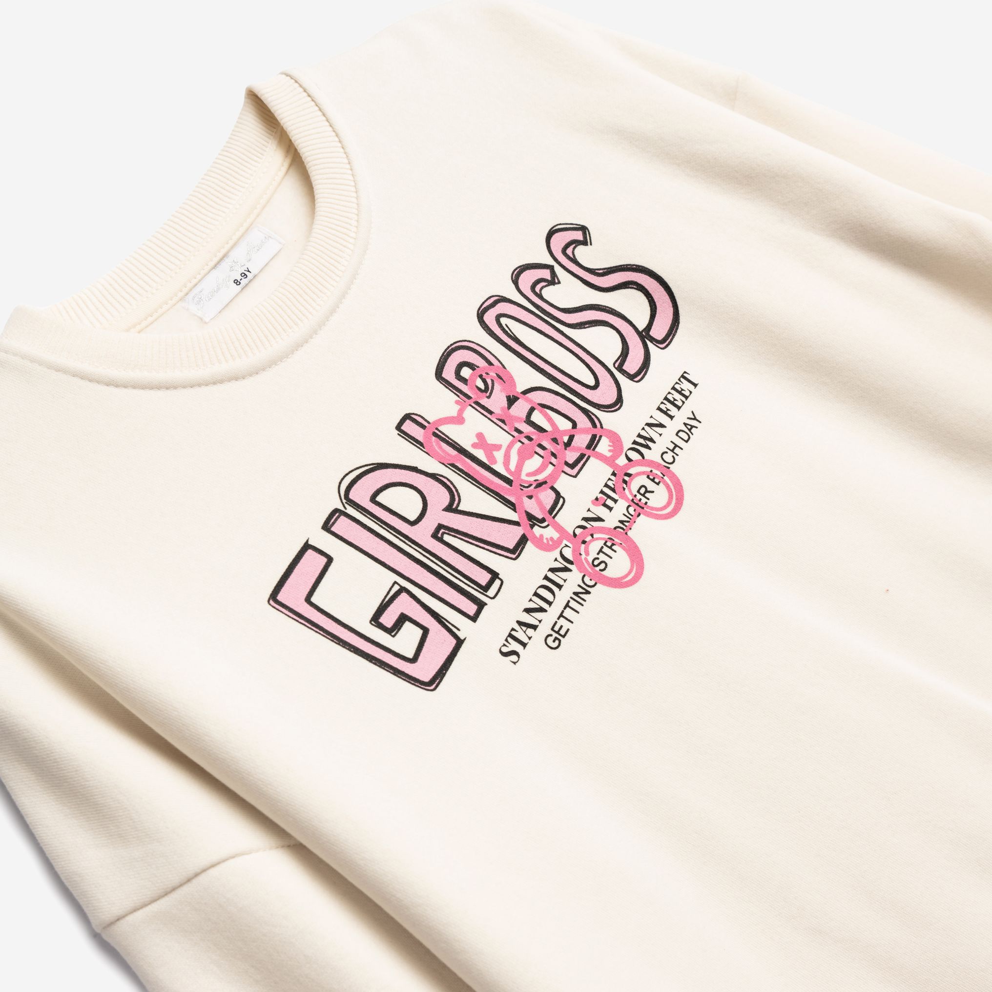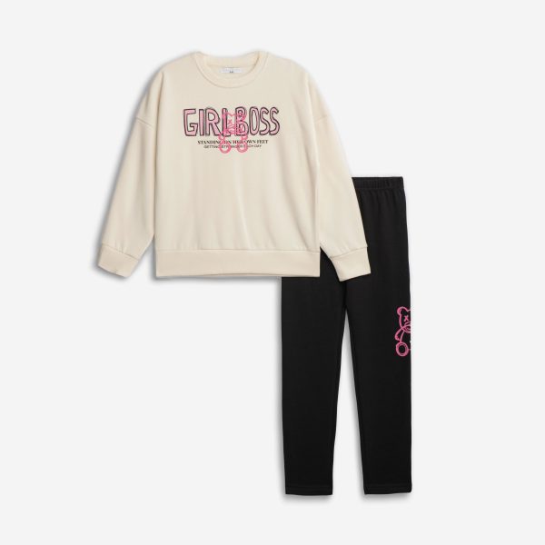 Σετ μπλούζα φούτερ με τύπωμα και κολαν φούτερ λύκρα με τύπωμα για κορίτσι 6-16 χρονών σε χρώμα σκούρο εκρού/μαύρο