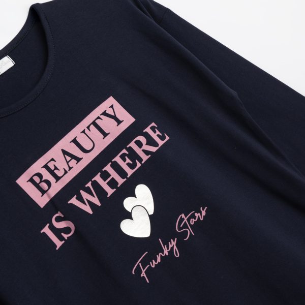 Σετ μπλουζοφόρεμα φούτερ με τύπωμα και κολάν κάλτσα λύκρα με τύπωμα allover για κορίτσι 6-16 χρονών σε χρώμα μπλε/σκούρο ροζ allover