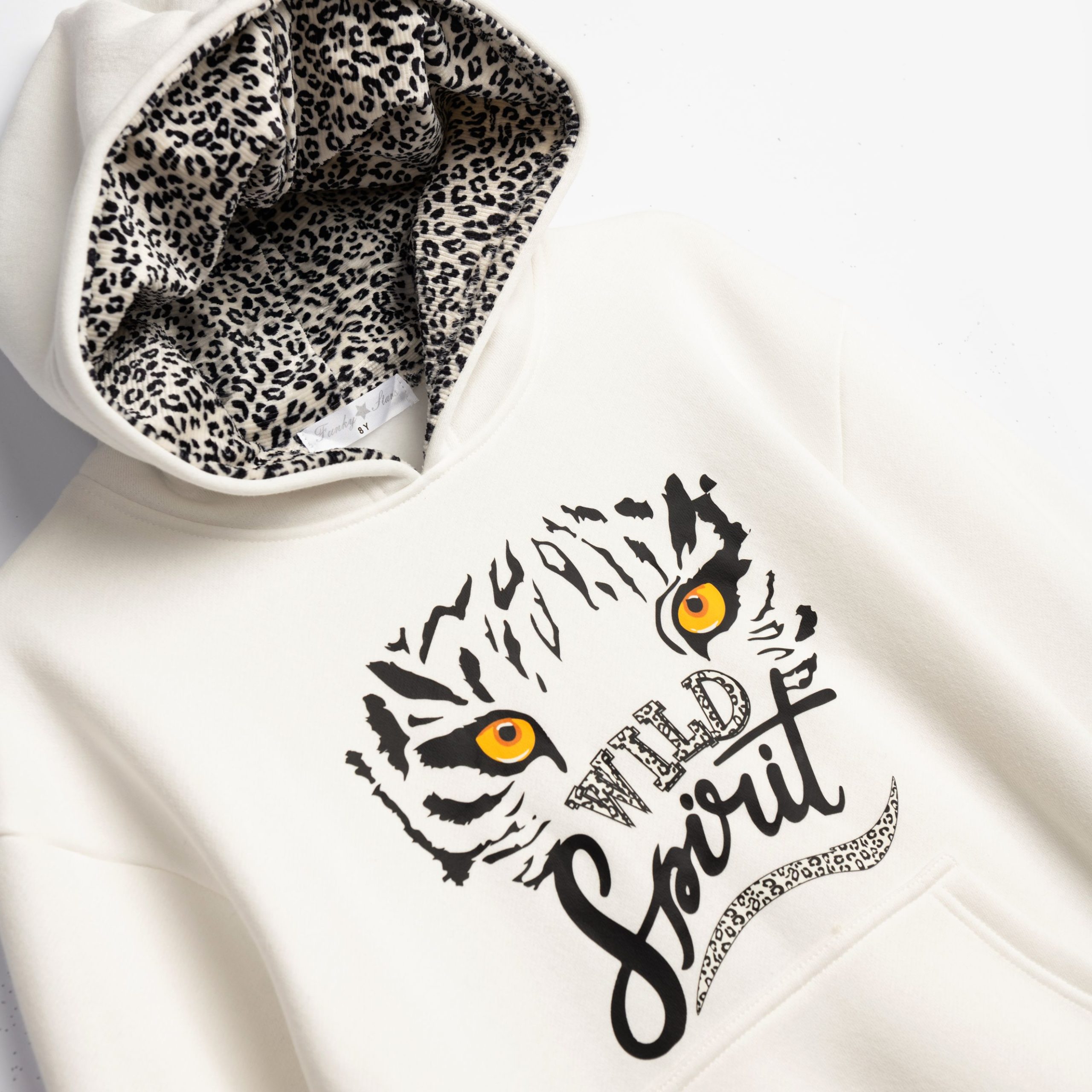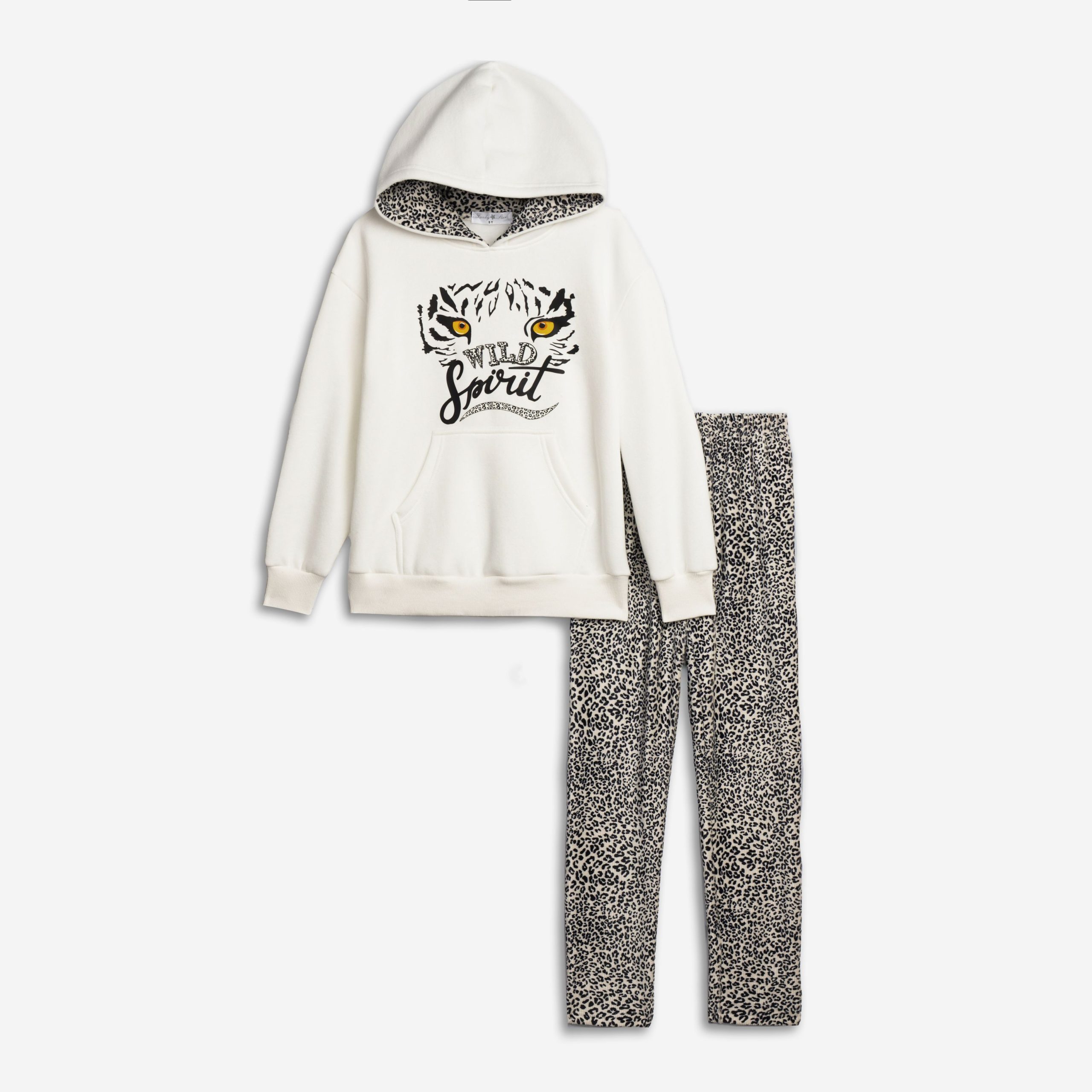 Σετ μπλουζοφόρεμα φούτερ με κουκούλα, με τύπωμα και κολάν κάλτσα λύκρα με τύπωμα allover για κορίτσι 6-16 χρονών σε χρώμα εκρού/λεοπάρ μαύρο-λευκό