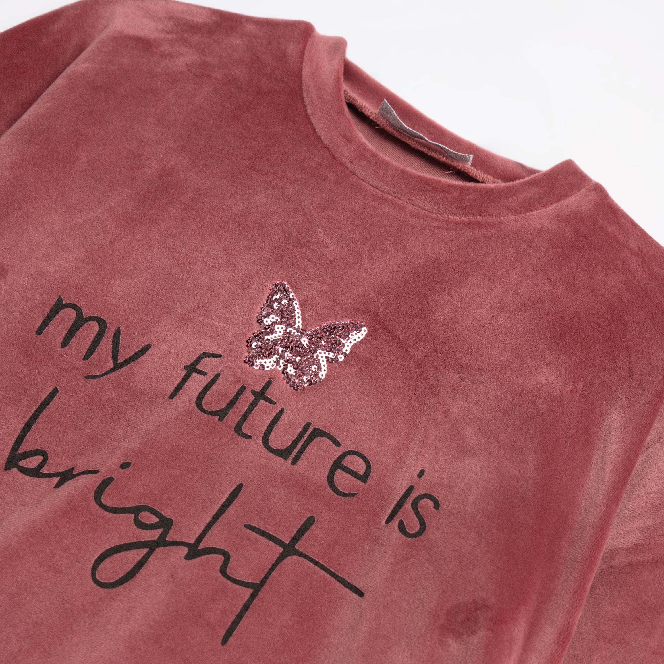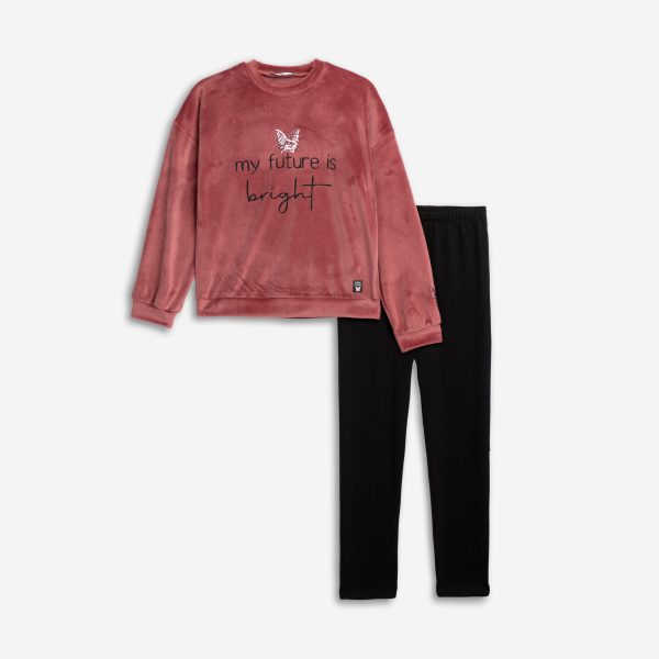 Set blouse+dress fleece with print aand leggings velvet for girl 6-16 years colored cherry/black
