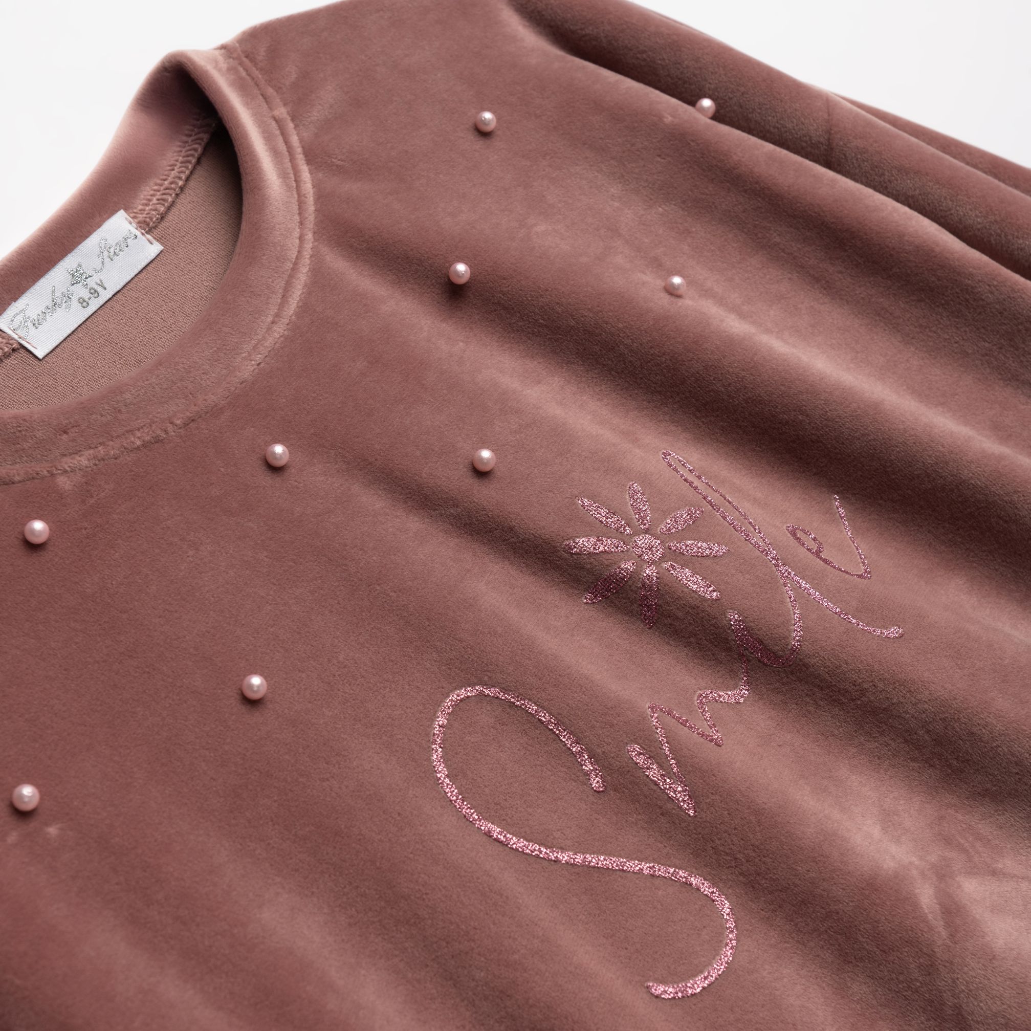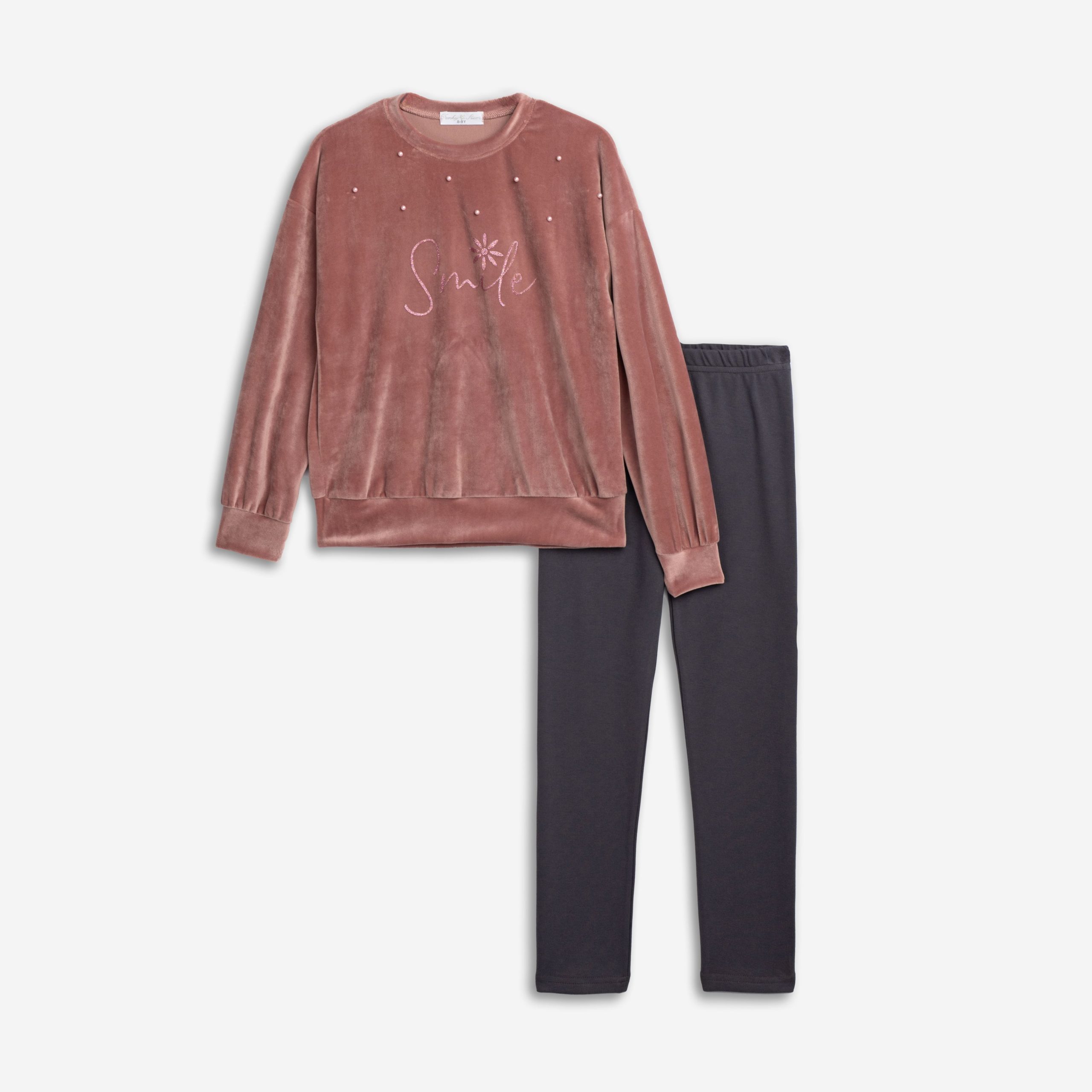 Set blouse+dress fleece with print and leggings velvet for girl 6-16 years colored powder/anthracite