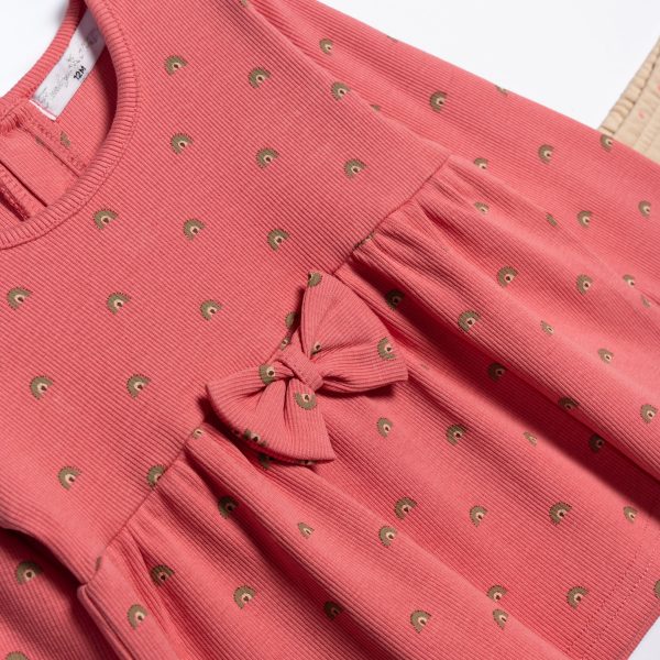 Σετ 2τεμαχίων μπλουζοφόρεμα ριπ με φιόγκο και κολάν ριπ για κορίτσι 6-24 μηνών σε χρώμα blush allover/blush allover
