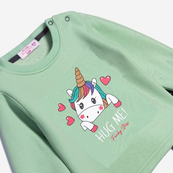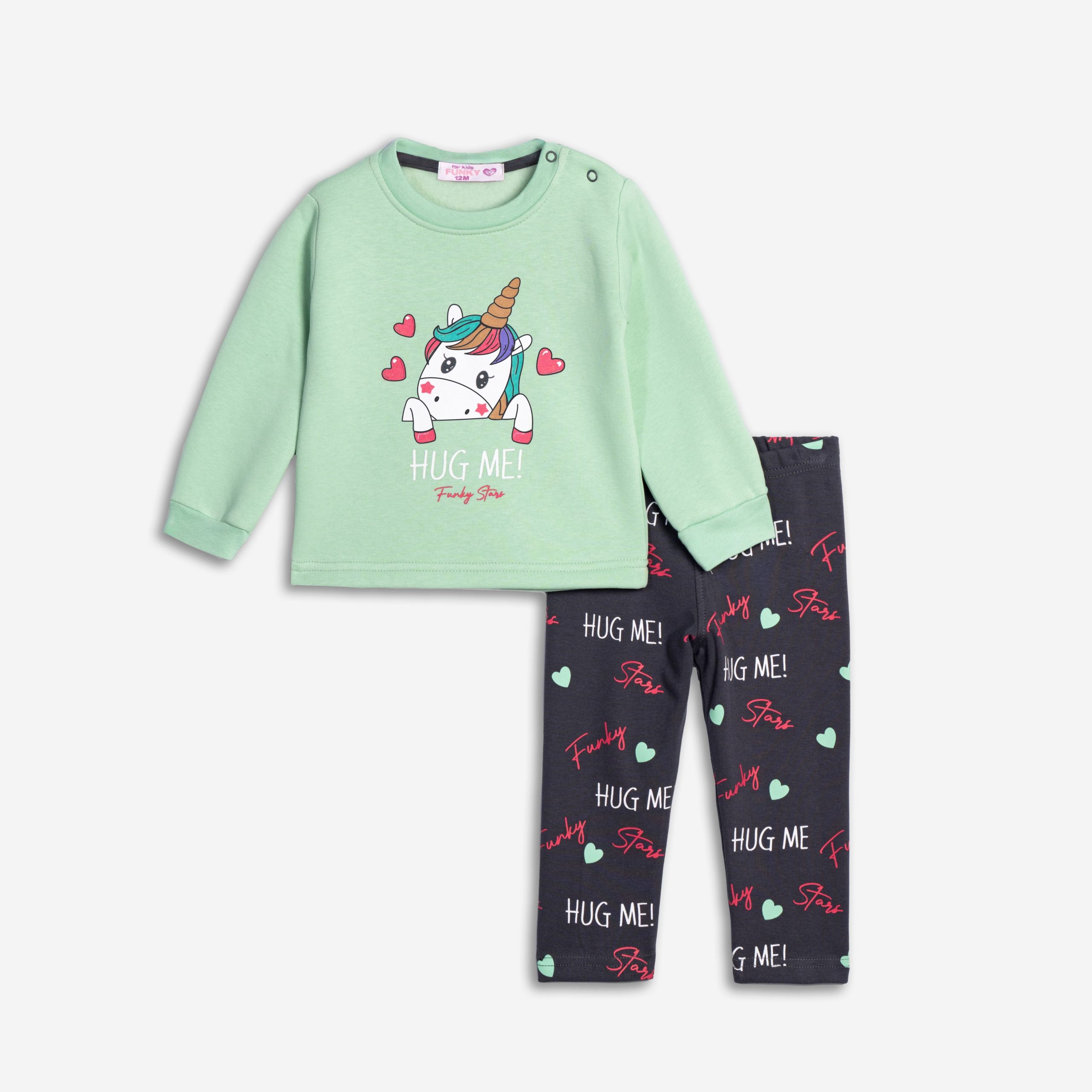 Σετ 2τεμαχίων μπλουζοφόρεμα φούτερ λύκρα με τύπωμα (πήγασος) και κολάν φούτερ λύκρα με τύπωμα allover για κορίτσι 6-24 μηνών σε χρώμα φυστικί/ανθρακί allover