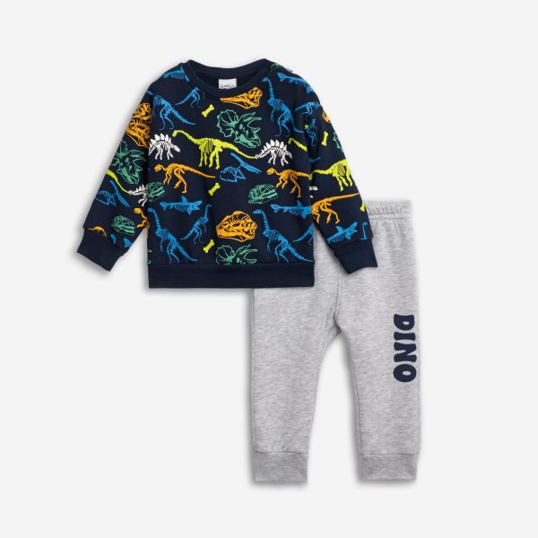 Σετ μπλούζα με τύπωμα (δεινόσαυροι) allover και παντελόνι με τύπωμα στο κάτω μέρος για αγόρι 6-24 μηνών σε χρώμα μπλε allover/γκρι μελανζέ
