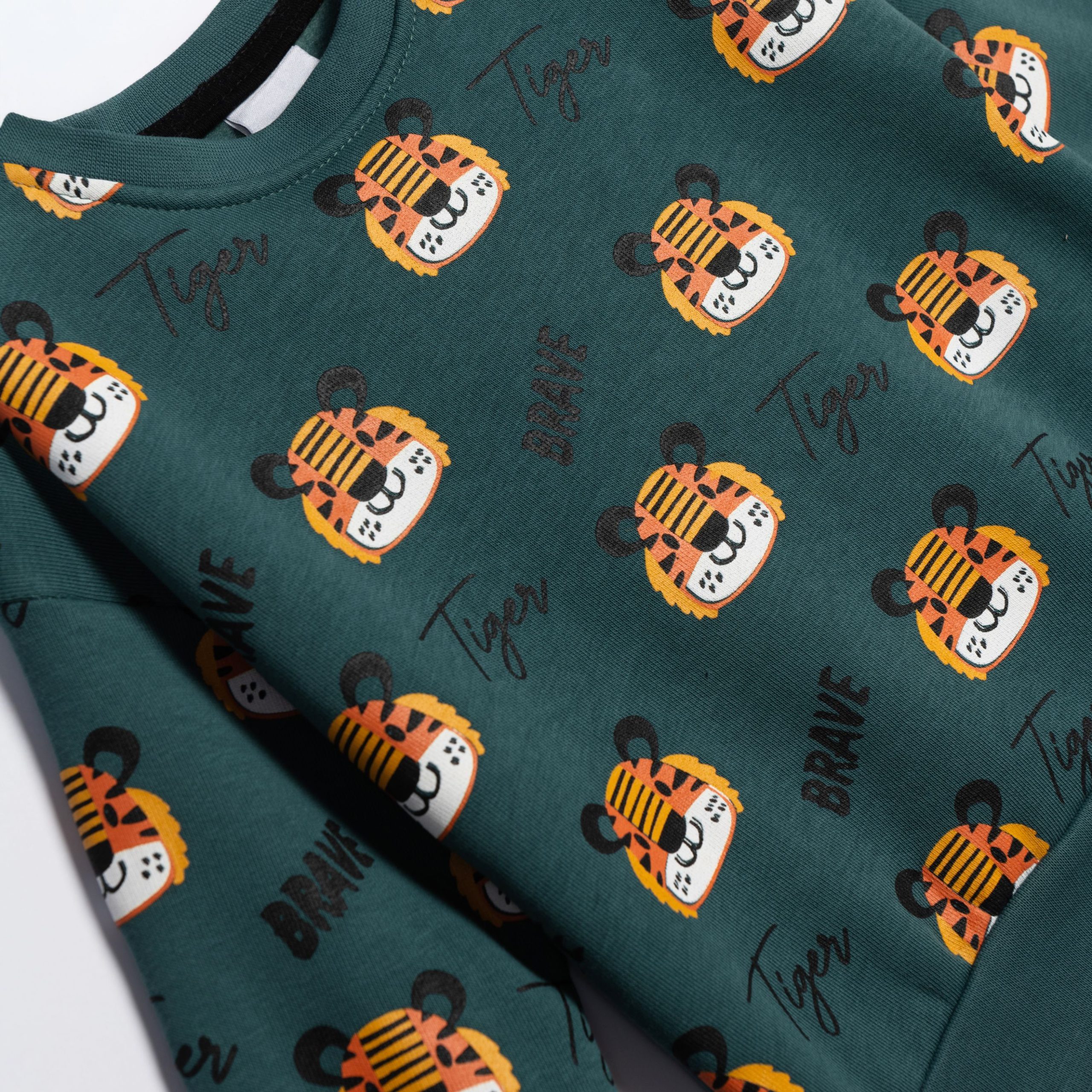 Σετ μπλούζα με τύπωμα (τιγράκια) allover και παντελόνι με τύπωμα στο κάτω μέρος για αγόρι 6-24 μηνών σε χρώμα irish green allover/μαύρο
