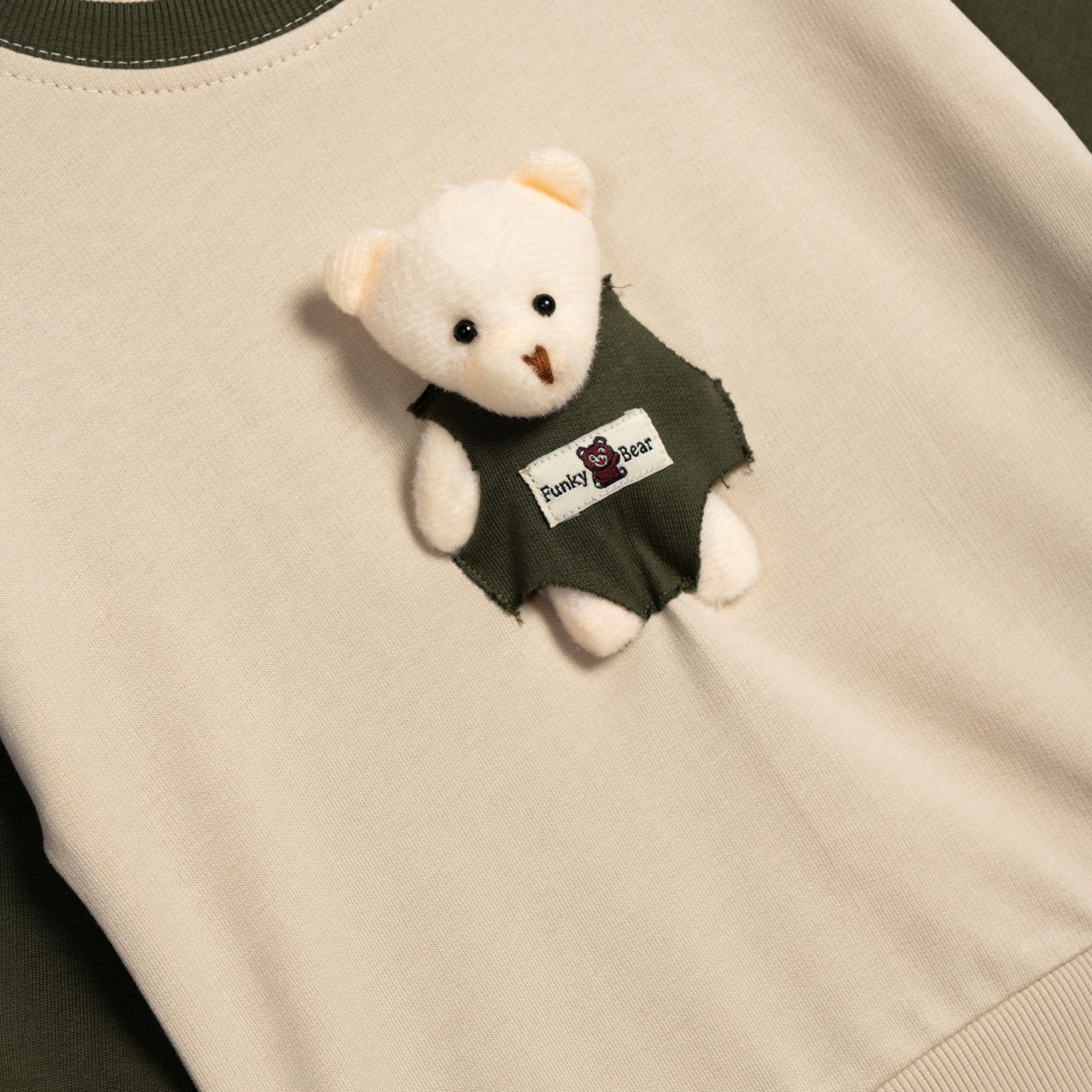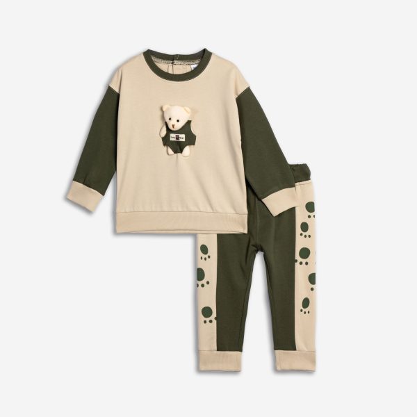 Σετ μπλούζα με τύπωμα (αρκουδάκι) και παντελόνι με τύπωμα στο πλάΐ για αγόρι 6-24 μηνών σε χρώμα μπεζ-χακί/χακί-μπεζ
