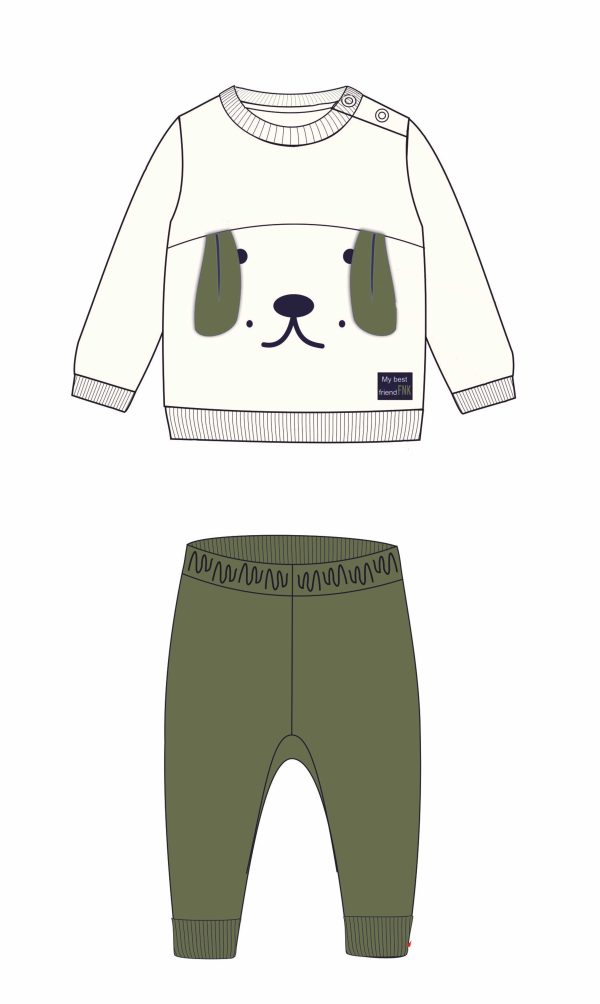 Σετ μπλούζα και παντελόνι με τύπωμα (σκυλάκι) για αγόρι 6-24 μηνών σε χρώμα εκρού/χακί