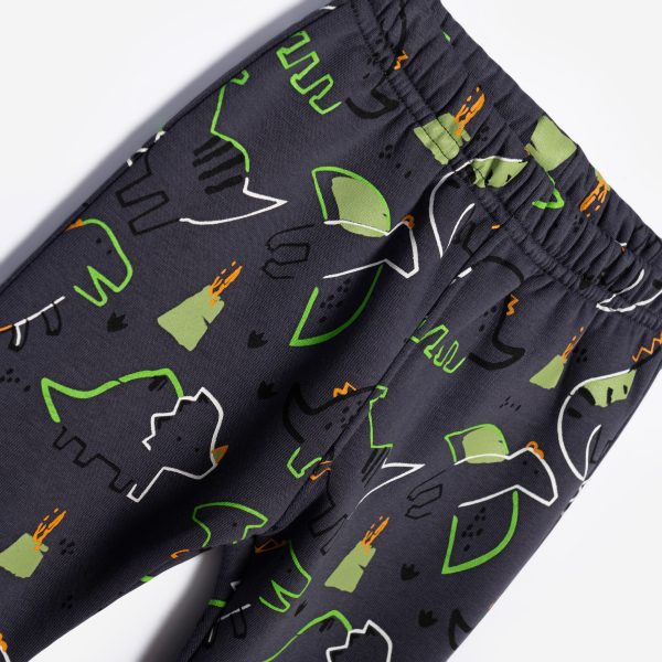 Σετ μπλούζα με τύπωμα και παντελόνι με τύπωμα allover για αγόρι 6-24 μηνών σε χρώμα πράσινο τσαΐ /ανθρακί allover