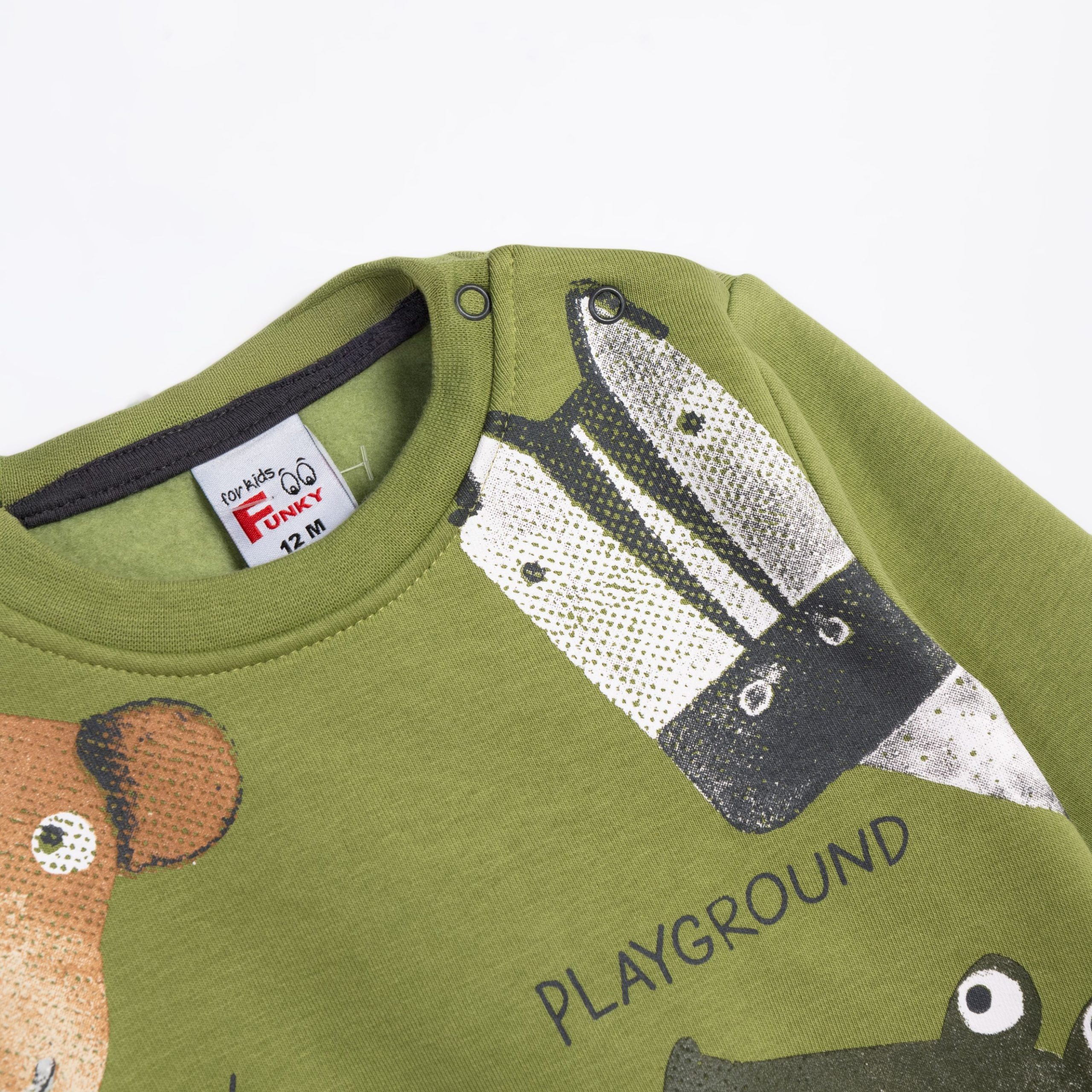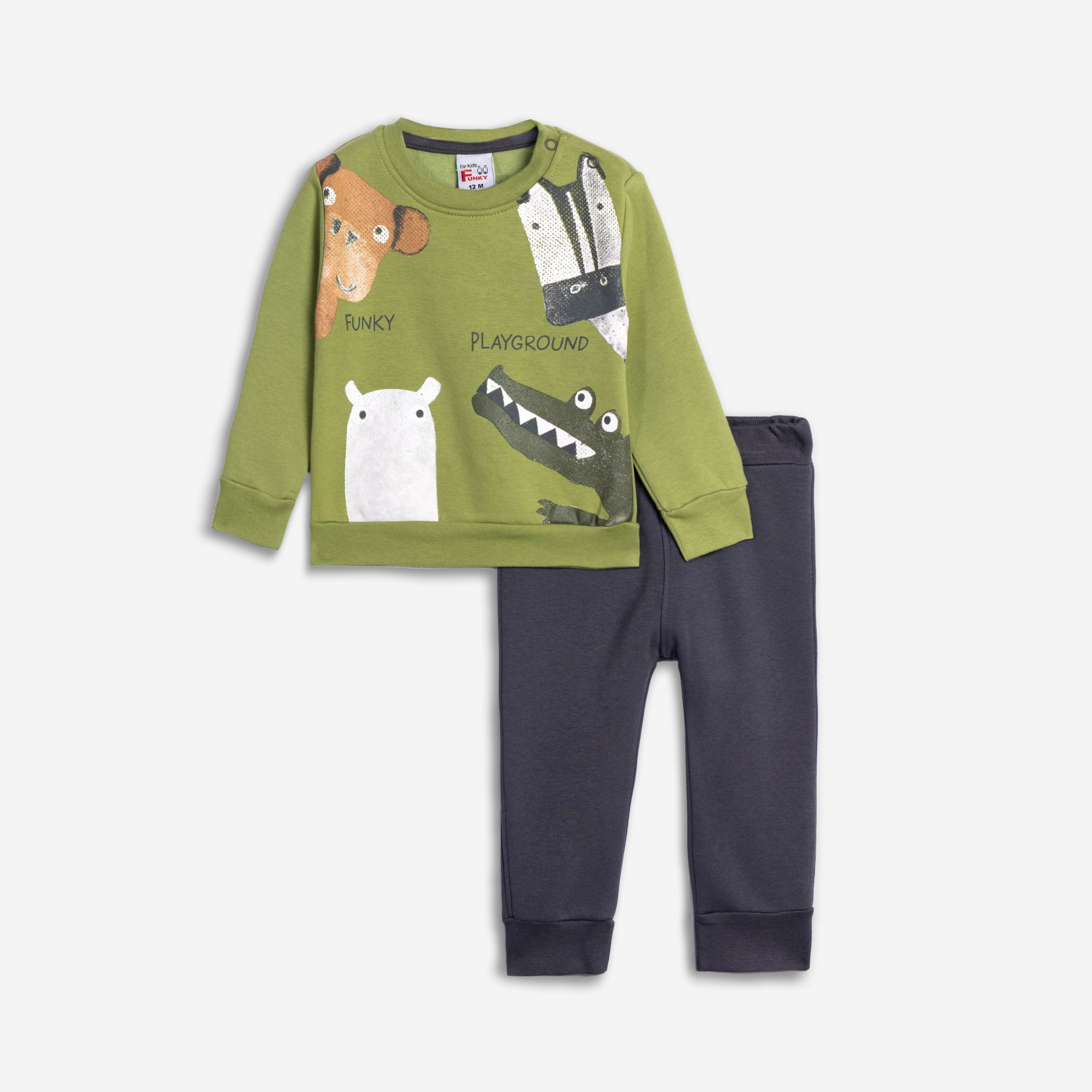 Σετ μπλούζα με τύπωμα (ζωάκια) allover και παντελόνι για αγόρι 6-24 μηνών σε χρώμα τσαΐ/ανθρακί