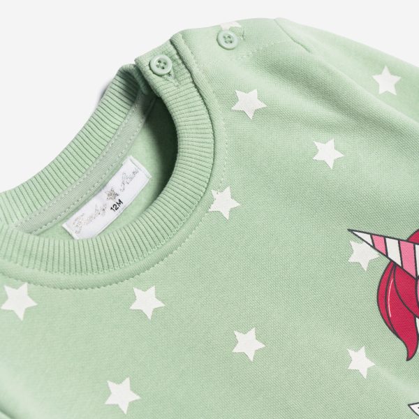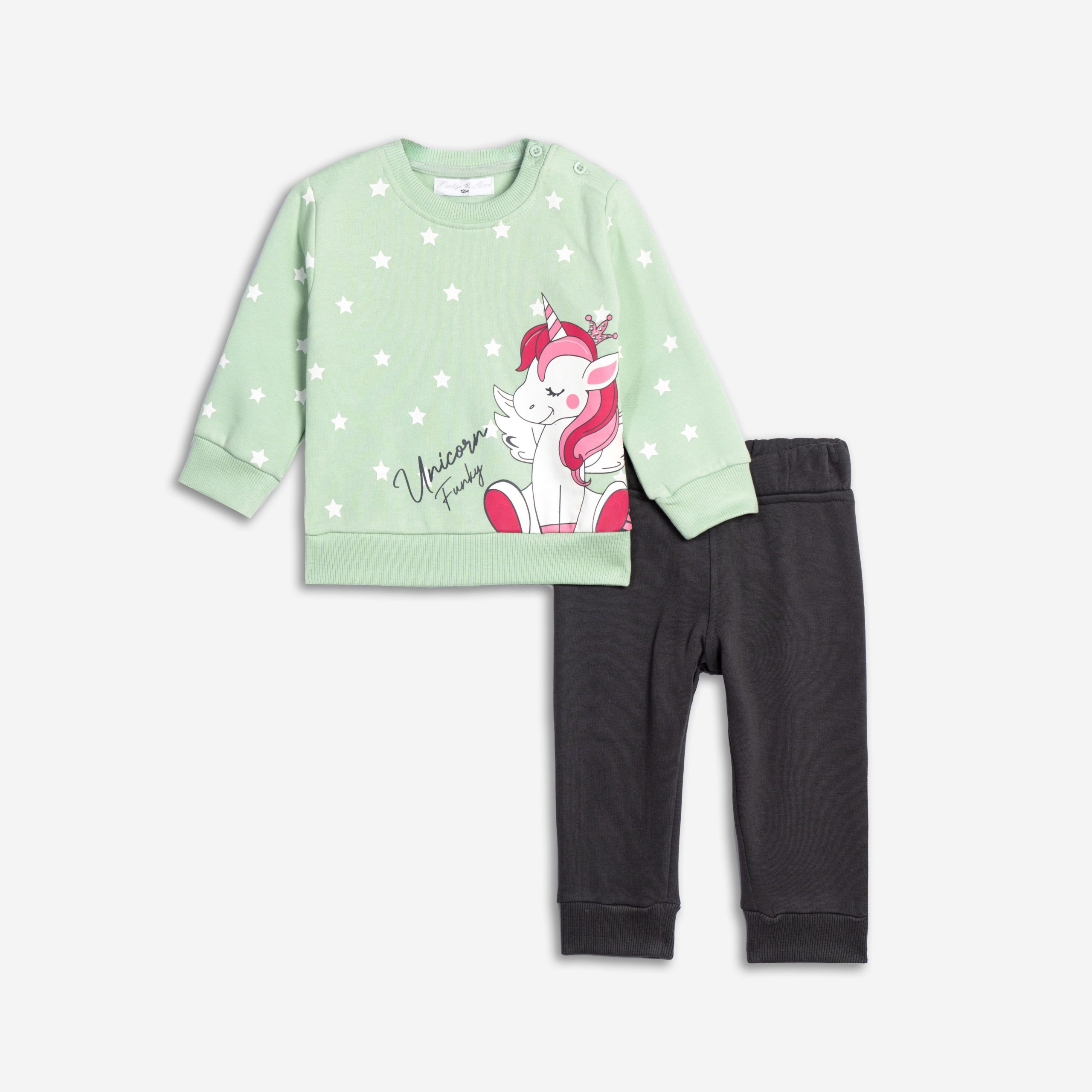 Σετ φόρμα μπλούζα φούτερ με τύπωμα(πήγασο) allover και παντελόνι φούτερ για κορίτσι 6-24 μηνών σε χρώμα φυστικί allover/ανθρακί
