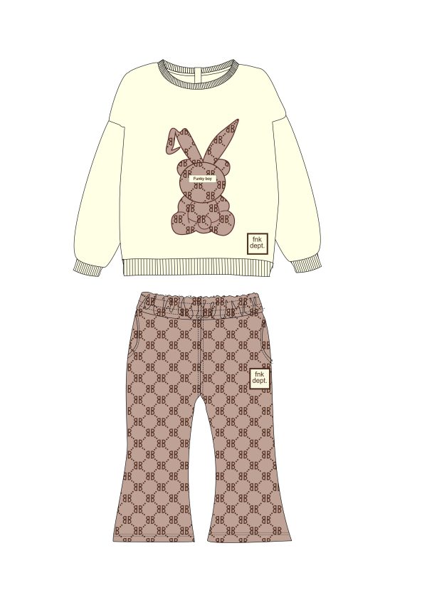 Σετ φόρμα μπλούζα φούτερ με τύπωμα(κουνελάκι),ριπ στα μανίκια και στον γιακά και παντελόνι φούτερ με τύπωμα allover για κορίτσι 6-24 μηνών σε χρώμα εκρού/μόκα allover