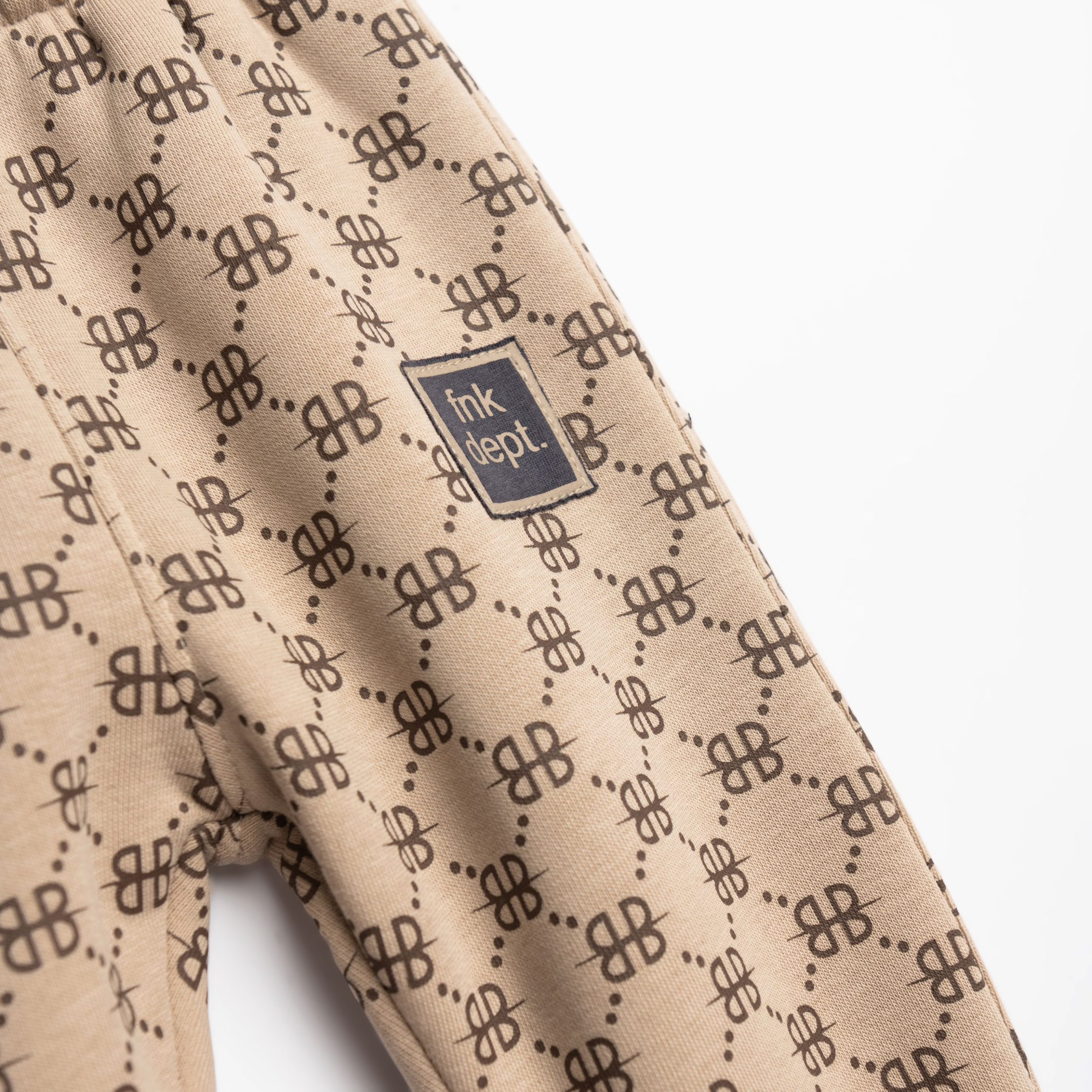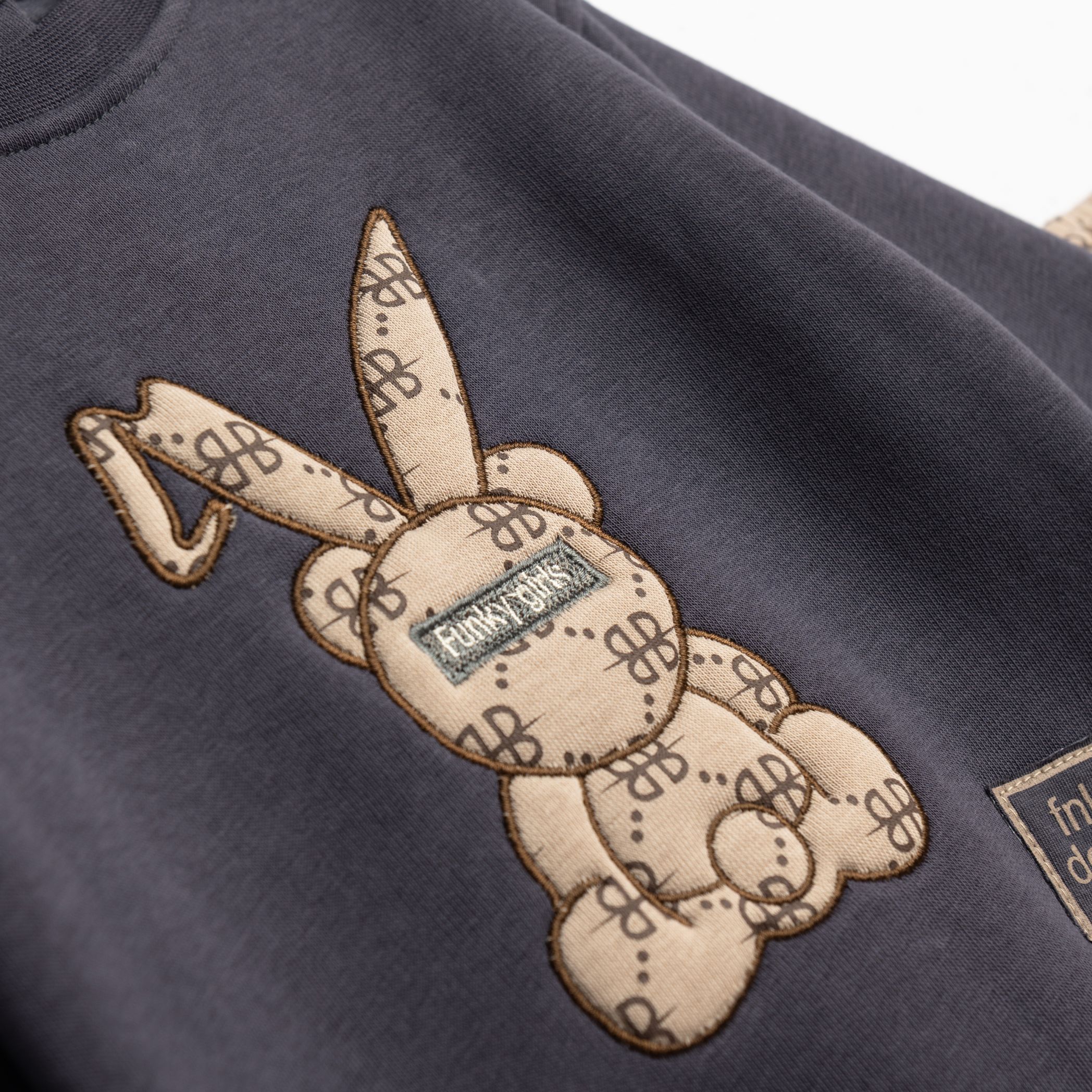 Σετ φόρμα μπλούζα φούτερ με τύπωμα(κουνελάκι),ριπ στα μανίκια και στον γιακά και παντελόνι φούτερ με τύπωμα allover για κορίτσι 6-24 μηνών σε χρώμα ανθρακί/μόκα allover