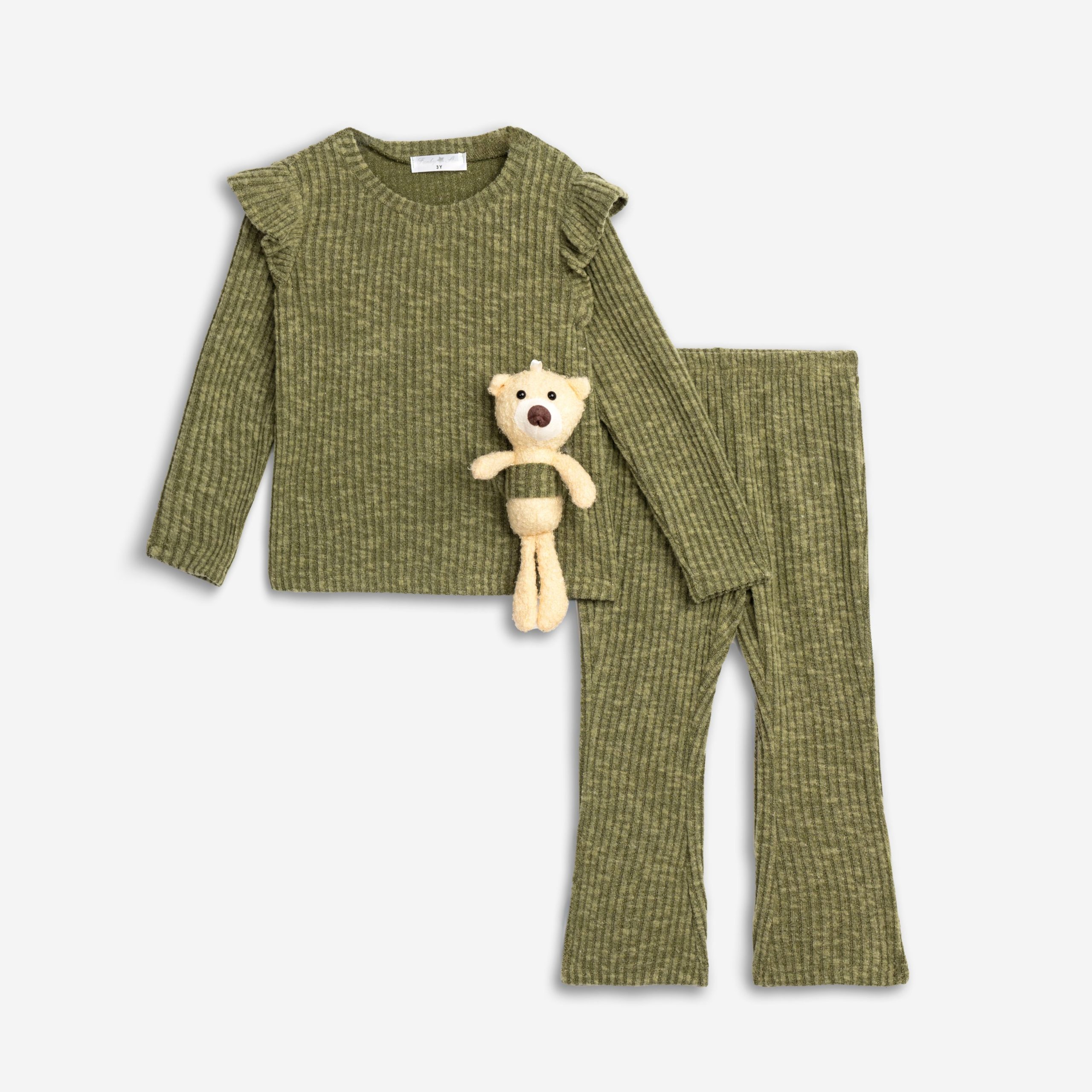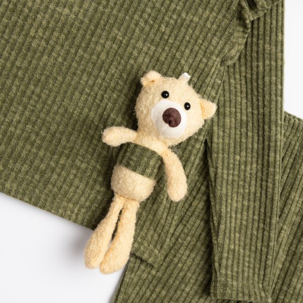 Σετ μπλούζα με παντελόνι ριπ για κορίτσι 2-6 ετών σε χρώμα ανοιχτό λαδί/ ανοιχτό λαδί με μικρό τύπωμα (αρκουδάκι)