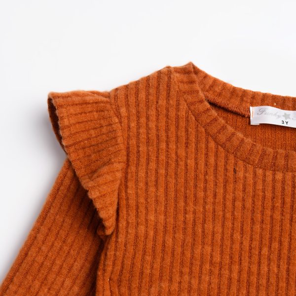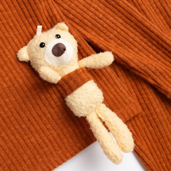 Σετ μπλούζα με παντελόνι ριπ για κορίτσι 2-6 ετών σε χρώμα κανέλα/ κανέλα με μικρό τύπωμα (αρκουδάκι)