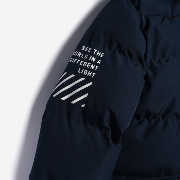 Τζάκετ με γούνα,κουκούλα και τύπωμα για αγόρι 6-16 χρονών σε χρώμα μπλε