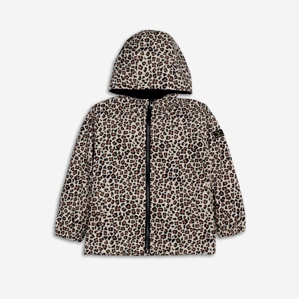 Τζάκετ για κορίτσι 2-6 ετών σε χρώμ άμμος allover (animal print), μαύρο χρώμα εσωτερικό