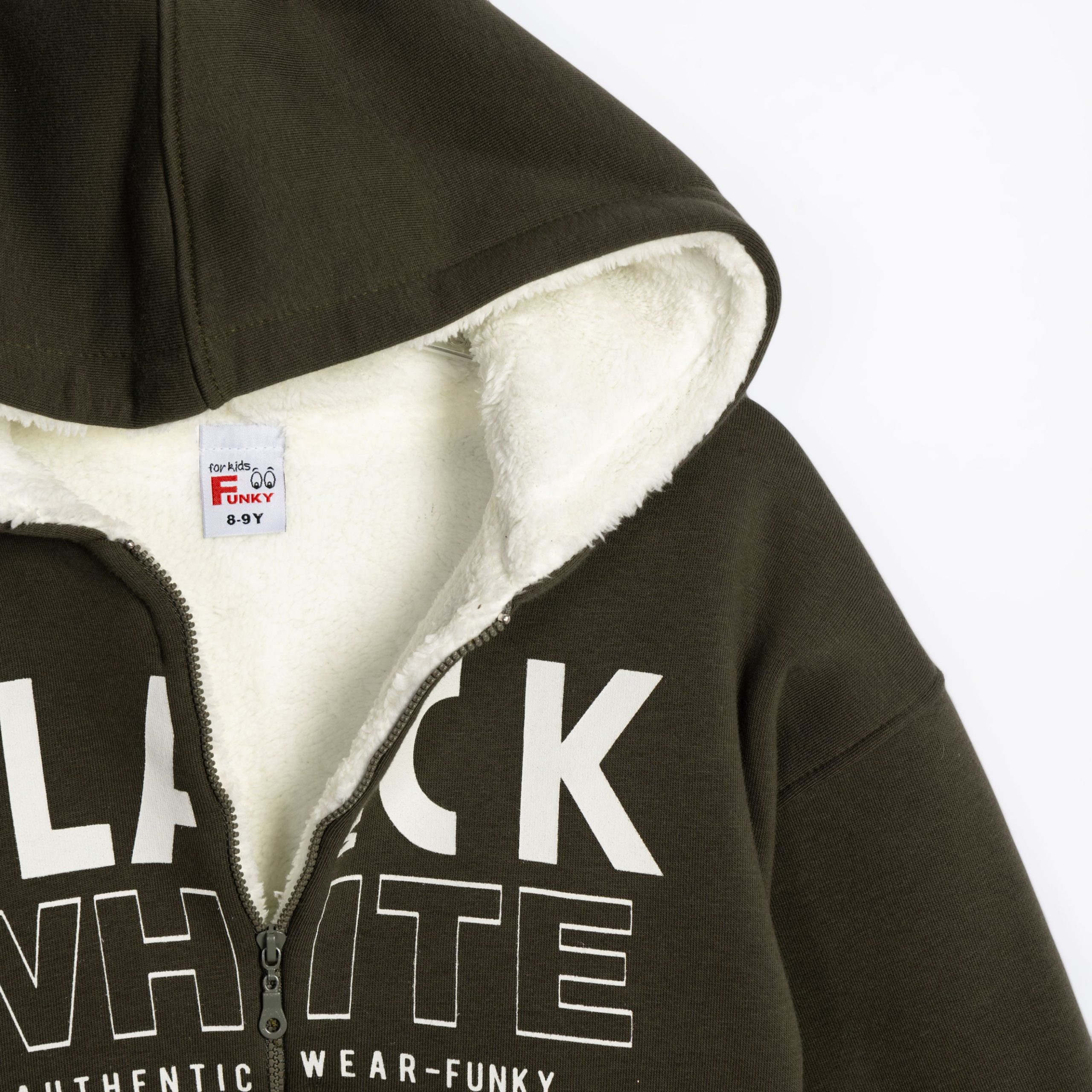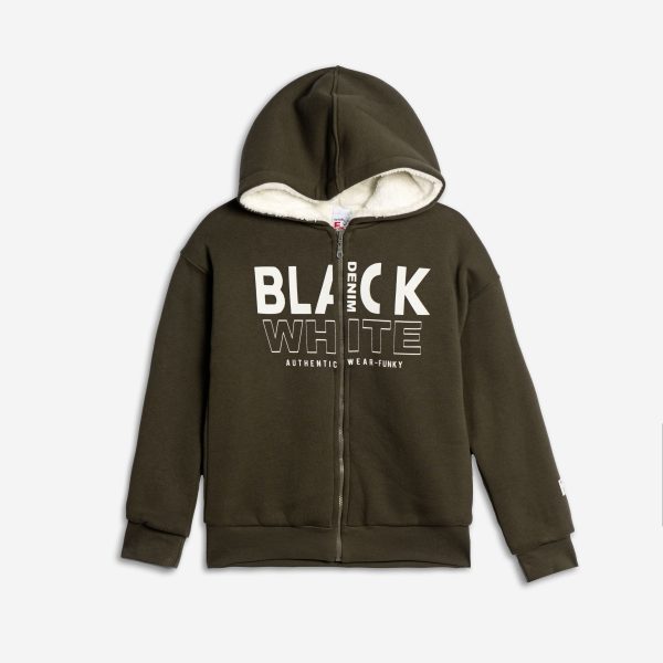 Ζακέτα φούτερ κουκούλα με προβατάκι σε χρώμα χακί για 6-16 χρονών αγόρι