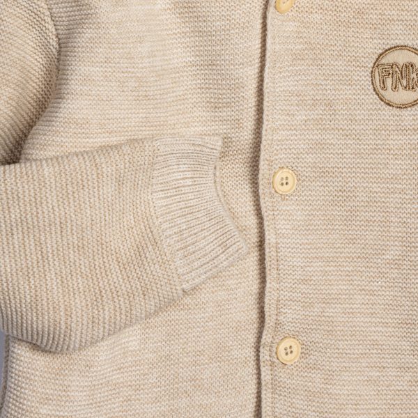 Ζακέτα πλεκτή με κουκούλα για αγόρι 2-6 ετών σε χρώμα μπεζ-εκρού μελανζέ